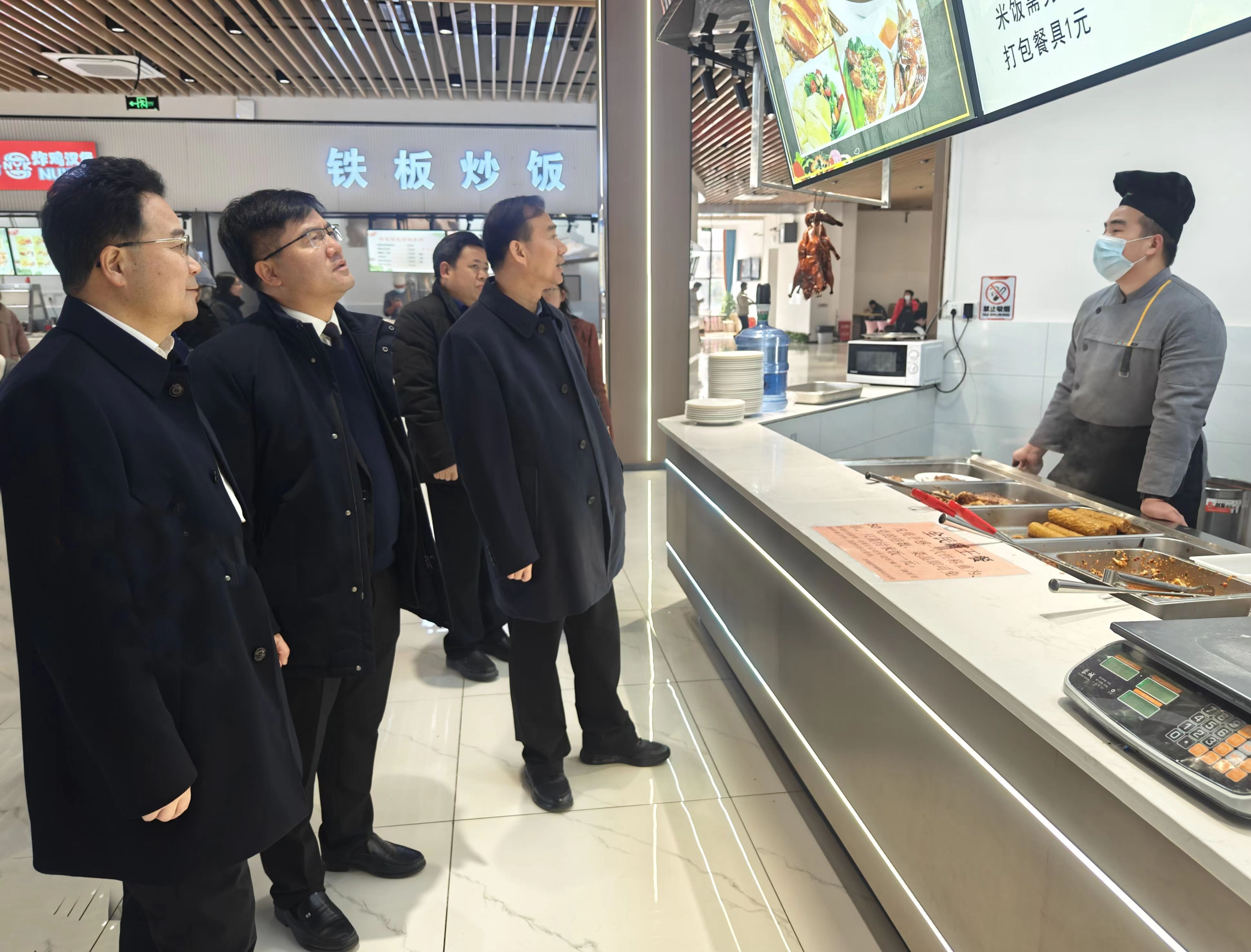朱洪武还深入松园食堂实地查看食堂就餐环境、菜肴品种、环境卫生、食品价格等方面情况,详细询问食堂日常运营、食品安全责任制落实等情况。他强调,要牢固树立以人为本、服务学生的工作理念,关心关爱学生,根据学生的生活习惯和饮食习惯,丰富菜品品种,让不同口味的学生有不同的选择,为学生提供优质、安全的饮食服务和温馨、舒适的就餐环境,打造干净整洁、服务优质、学生认可的暖心餐厅。同时,他还强调,始终把食品安全工作放在心上、扛在肩上、抓在手上,保障学生身体健康,维护校园安全稳定。