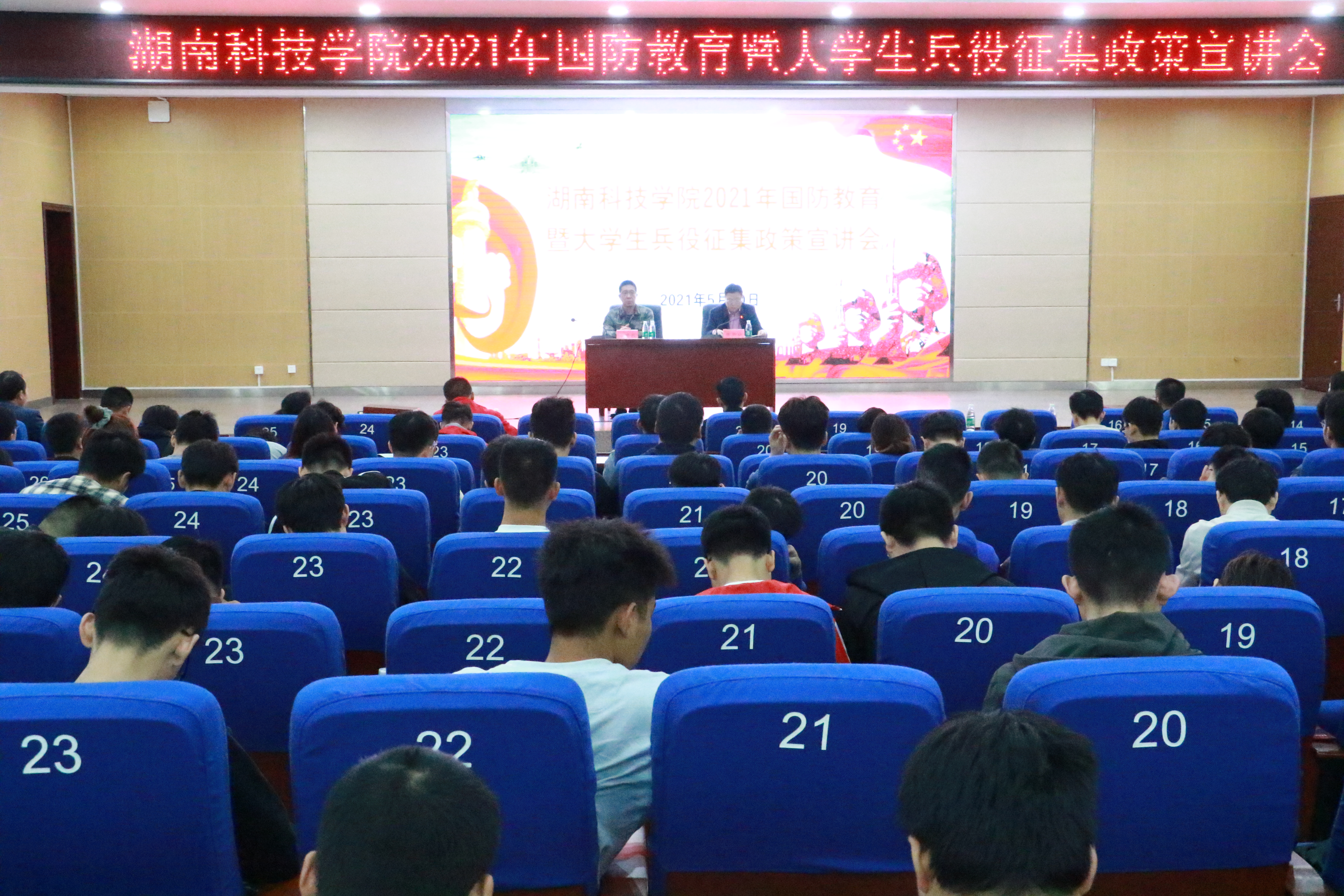 本网讯 5月20日上午,学校召开2021年国防教育暨大学生兵役征集政策宣讲会,进一步推进大学生应征入伍工作,激发大学生参军报名热情。零陵区区委常委、区人武部部长王建武受邀出席并做报告,会议由世界杯官网武装部部长唐华山主持。