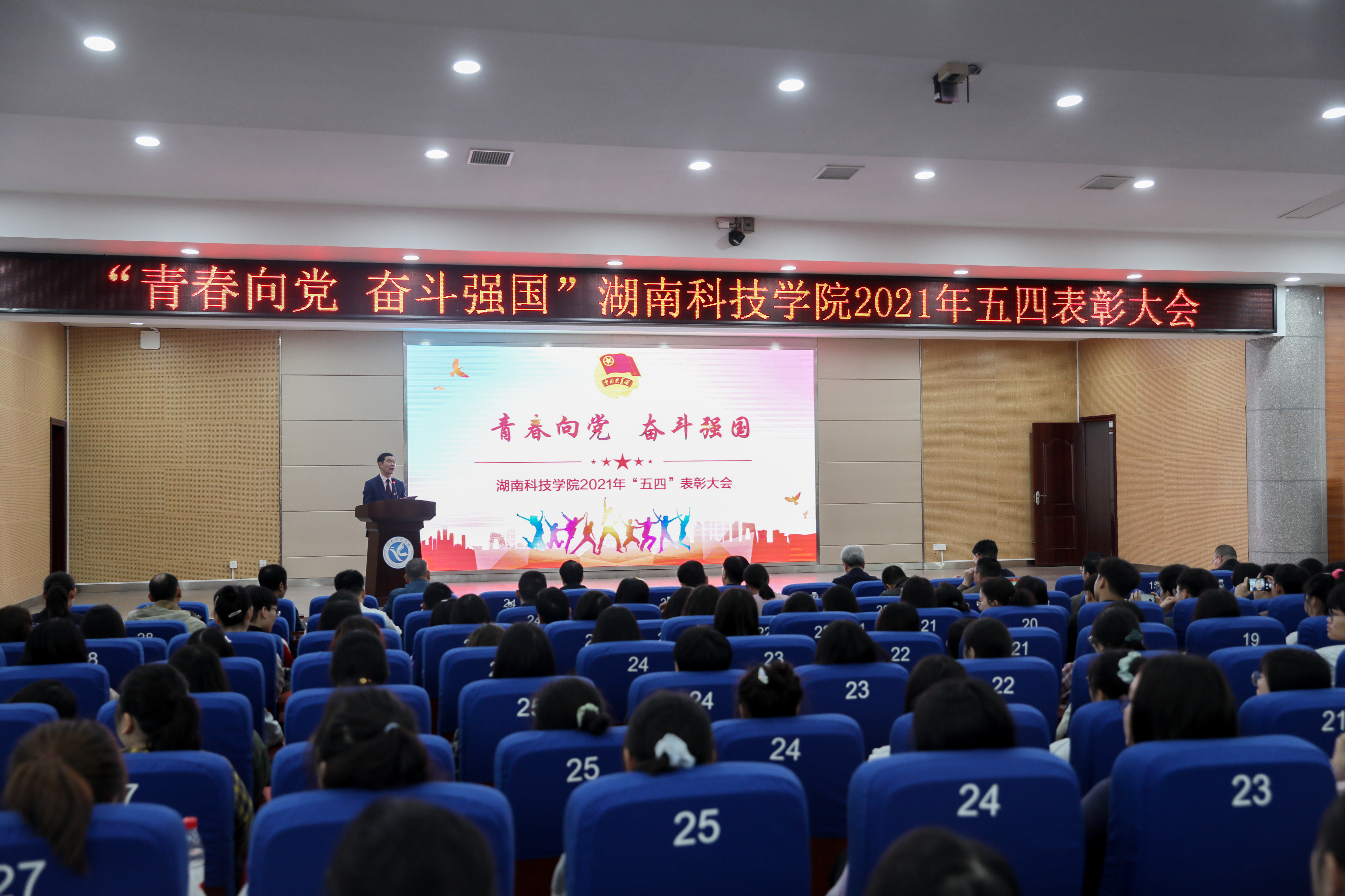 校党委书记曾宝成代表学校向受表彰的先进集体和个人表示祝贺,并向全校青年师生致以节日的美好祝愿!他对大家提出四点期望:一是要坚定信念,树立远大理想;二是要修身立德,锤炼品德修为;三是要勤学好思,练就过硬本领;四是要砥砺奋斗,勇担时代责任。他希望学校广大青年师生赓续五四运动的伟大传统,以“学党史”为基本点,以“强信念”为总开关,以“跟党走”为总目标,不负重托、不辱使命,让青春在推动湘科院的发展进程中灿烂夺目,让青春在实现中国梦的生动实践中熠熠生辉。