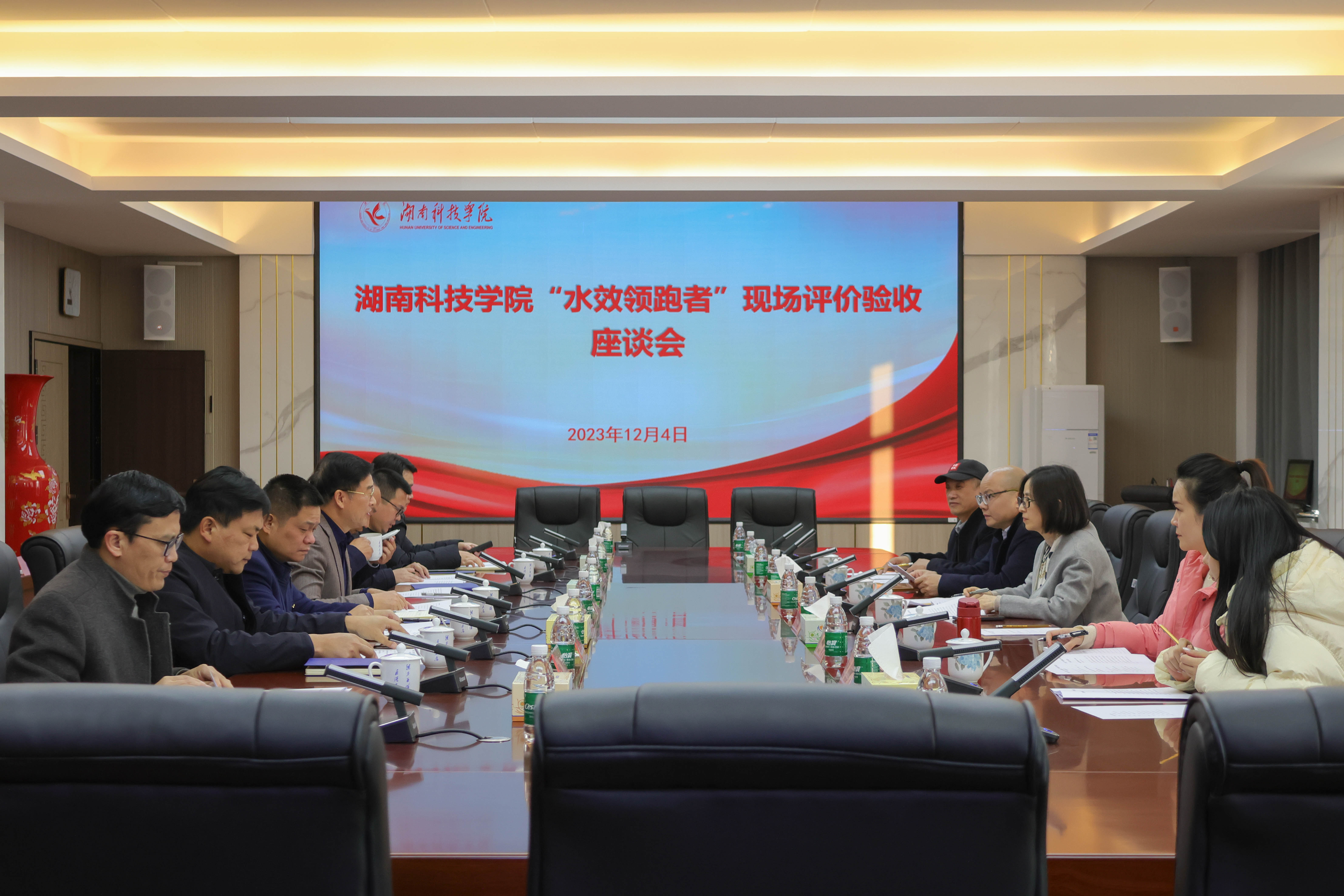 本网讯(记者 余佳佳 赵丹) 12月4日,省机关事务管理局节能处副处长康纯,省发改委资环处副处长芦敏,省机关事务管理局节能科科长周木子一行来校进行“水效领跑者”现场视察评估。党委副书记宋宏福,党委委员、组织部部长杨涛,市机关事务管理局党组书记、局长蒋季红,市机关事务管理局党组成员、副局长唐晓斌出席座谈会。会议由杨涛主持。