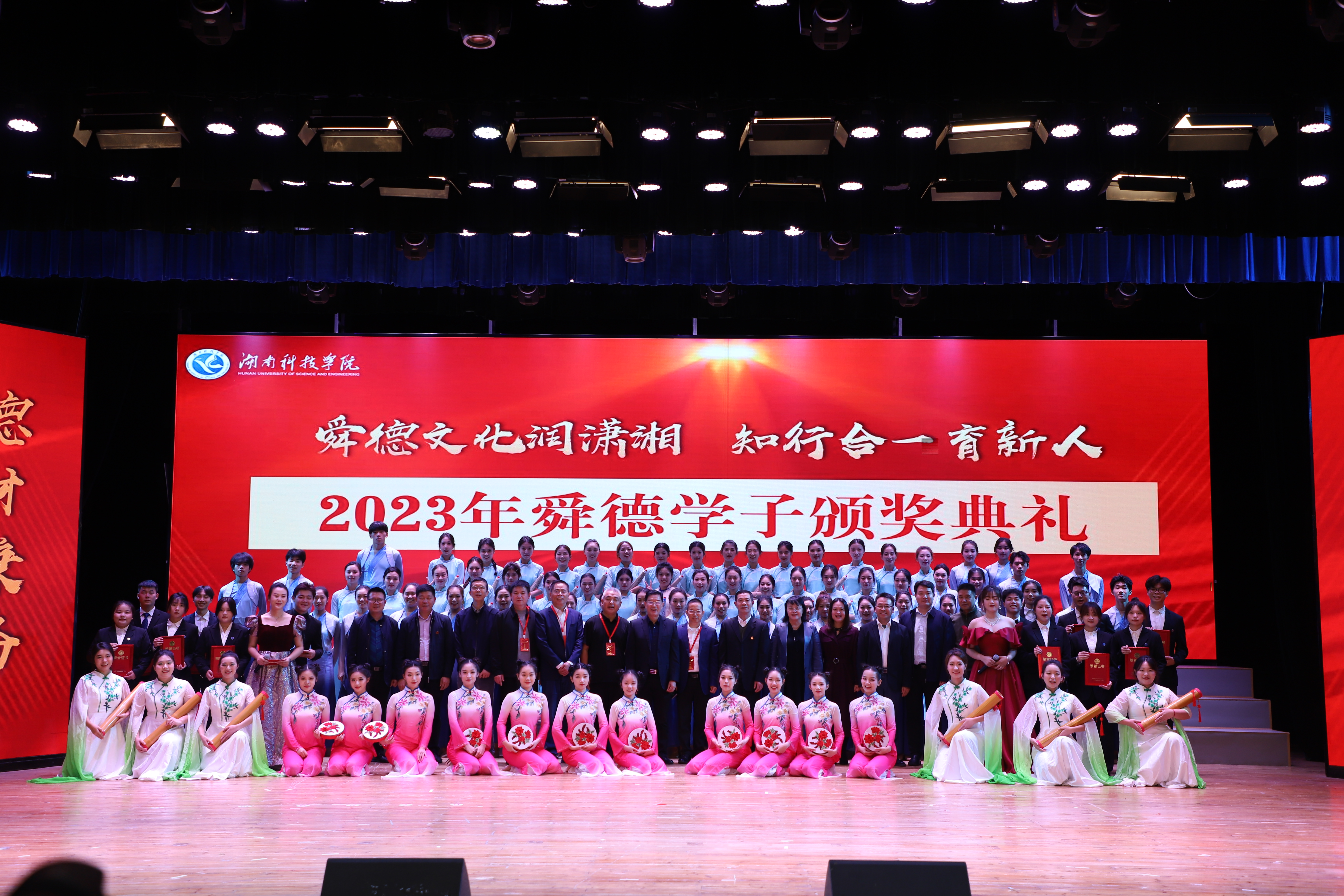 本网讯(记者 刘思哲 曾紫然)舜德文化润潇湘,知行合一育新人。11月11日,学校举行2023年舜德学子颁奖典礼,100名优秀学子获表彰。湖南省政协文教卫体和文史委员会副主任、校原党委书记陈建民,党委副书记宋宏福,党委委员、副校长吴小林,党委委员、纪委书记陈灿军出席典礼。