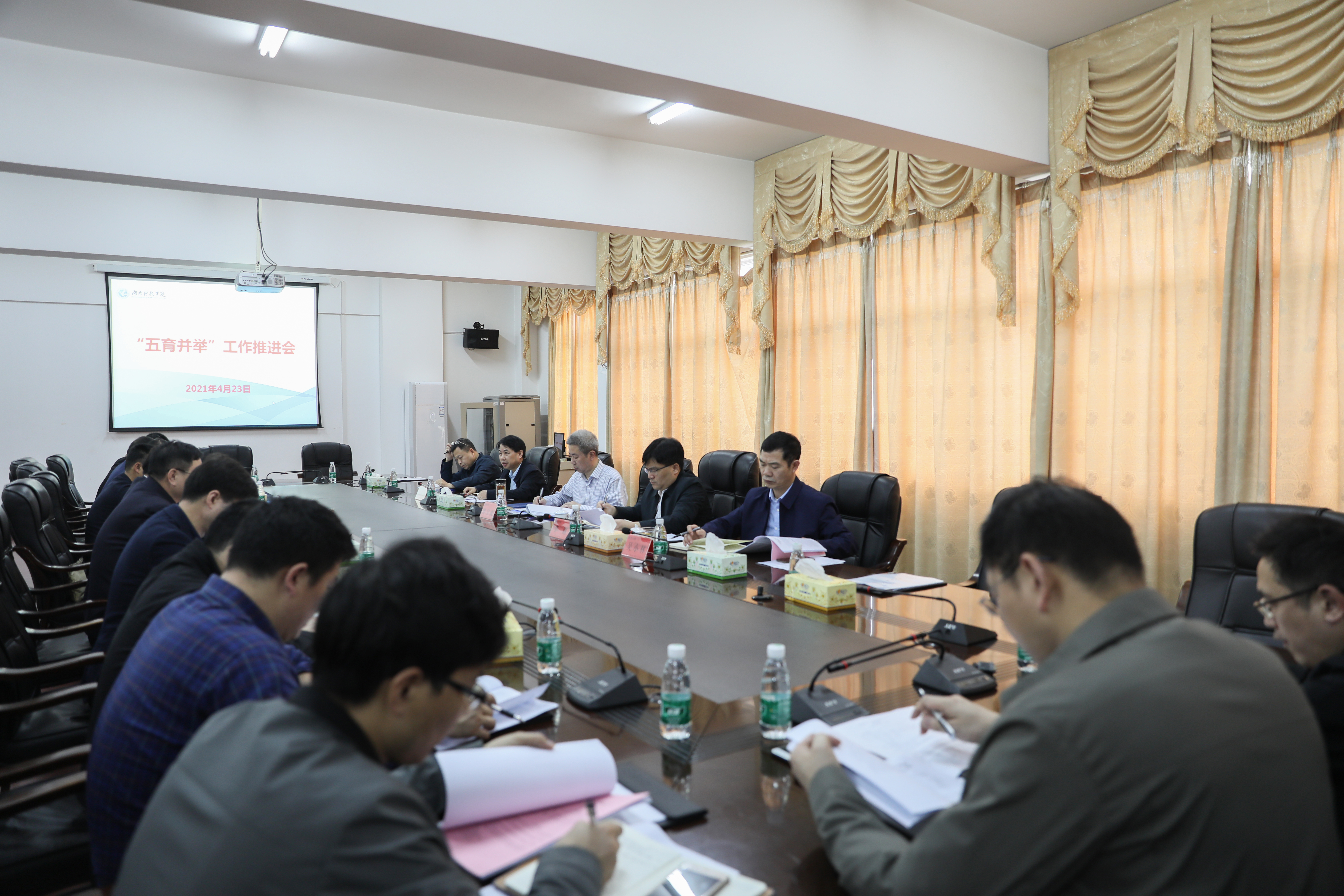 曾宝成强调,要认真学习领会相关政策精神,以项目为依托、以活动为载体,把德育、智育、体育、美育和劳动教育相融合,将思想政治工作贯穿育人全过程;要进一步加强顶层设计,形成部门分工协作、全员协同参与的责任体系,打造全方位的实践创新育人平台,提升“五育并举”工作的针对性、实效性;要科学组织实施,鼓励同学们每天运动1小时,养成爱运动、爱劳动的良好习惯,着力培养德智体美劳全面发展的社会主义建设者和接班人,有力助推“五育并举”工作迈上新台阶。