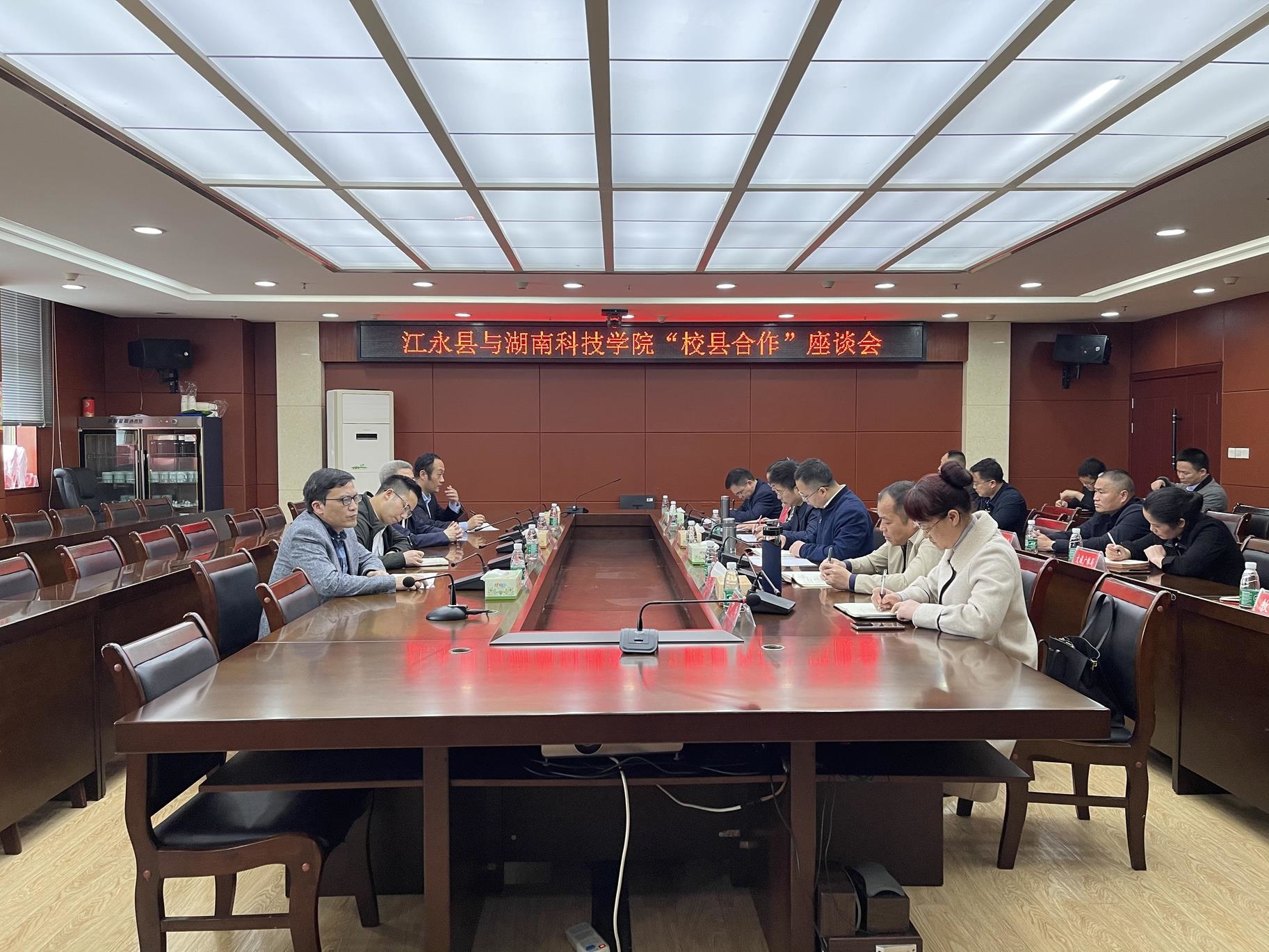 本网讯 为深化校县合作,助力乡村振兴,4月20日,党委书记曾宝成,党委委员、组织部部长杨涛一行赴江永县开展考察交流。江永县县委副书记、县长唐德荣,县委副书记龙亮,县领导刘忠华、李勇、陈小明及双方相关部门负责人出席座谈会。龙亮主持座谈会。