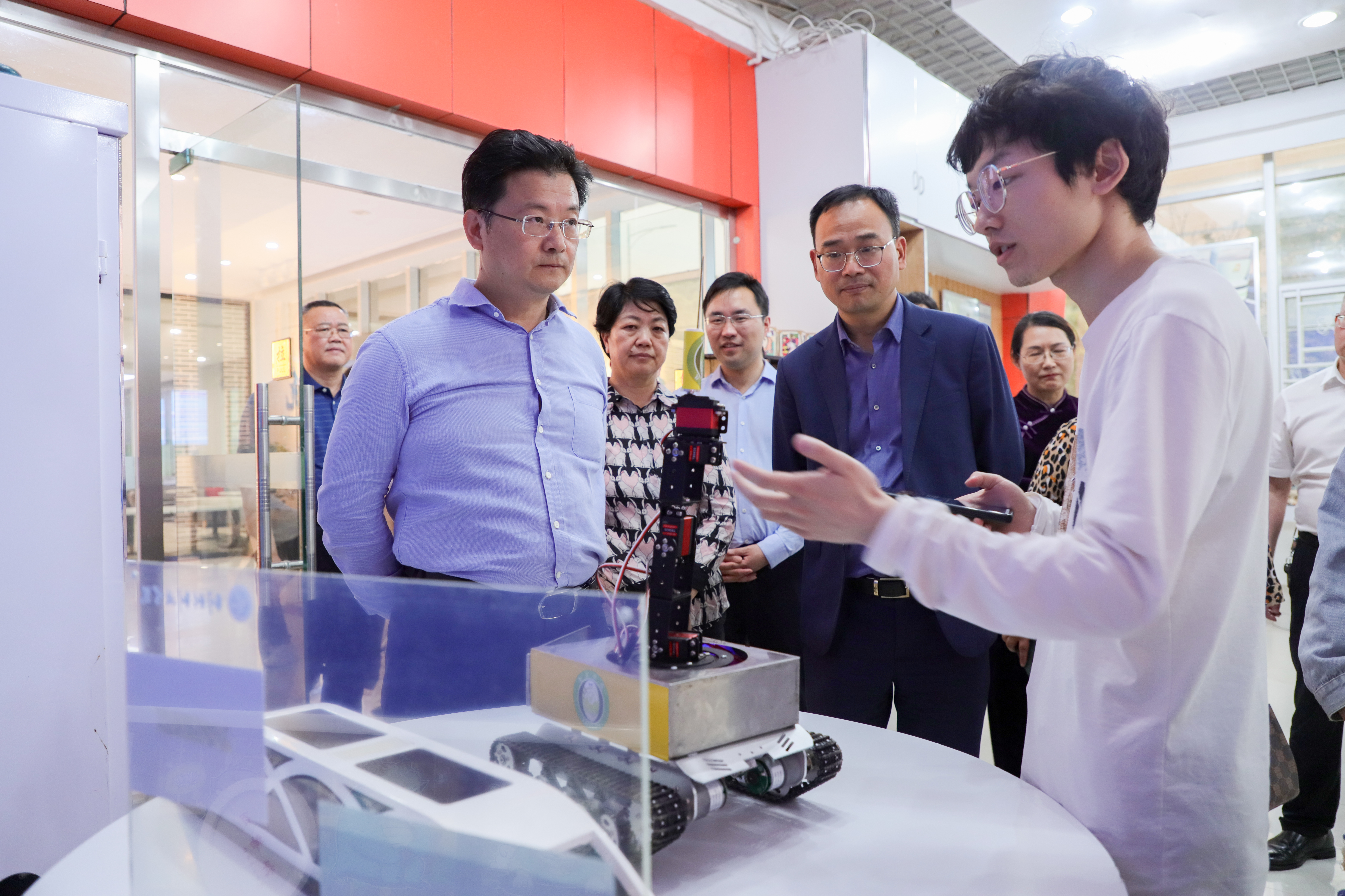 陈爱林一行来到世界杯官网省级重点实验室、国家级创客工场进行实地调研,与大家深入交流,详细了解科创队伍、科创能力、科创成果等方面的情况。陈爱林对世界杯官网在科学研究、平台建设、服务地方等方面取得的成绩给予高度肯定,他指出,要增强自主创新能力,整合资源,优化功能,更好发挥数字化平台作用。要加大对重点科研项目的支持力度,加强校企合作,对接市场主体,让科技成果更好推动本地经济发展。