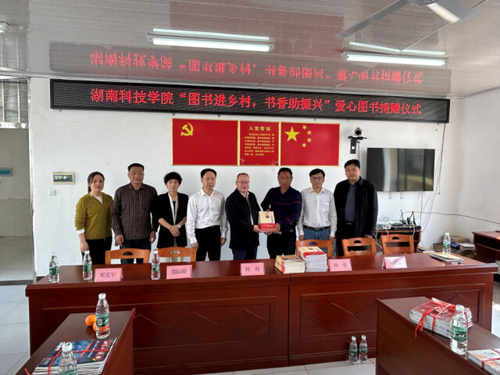 本网讯 3月21日,副校长何海一行赴江永县桃川镇邑口村开展“图书进乡村,书香助振兴”图书捐赠活动。活动共捐赠给邑口村《少年毛泽东》等各类图书杂志共500余册,涵盖党史、文学、养生、农业科技等领域,内容丰富,涉及面广,有利于农村思想文化建设和农业知识普及。