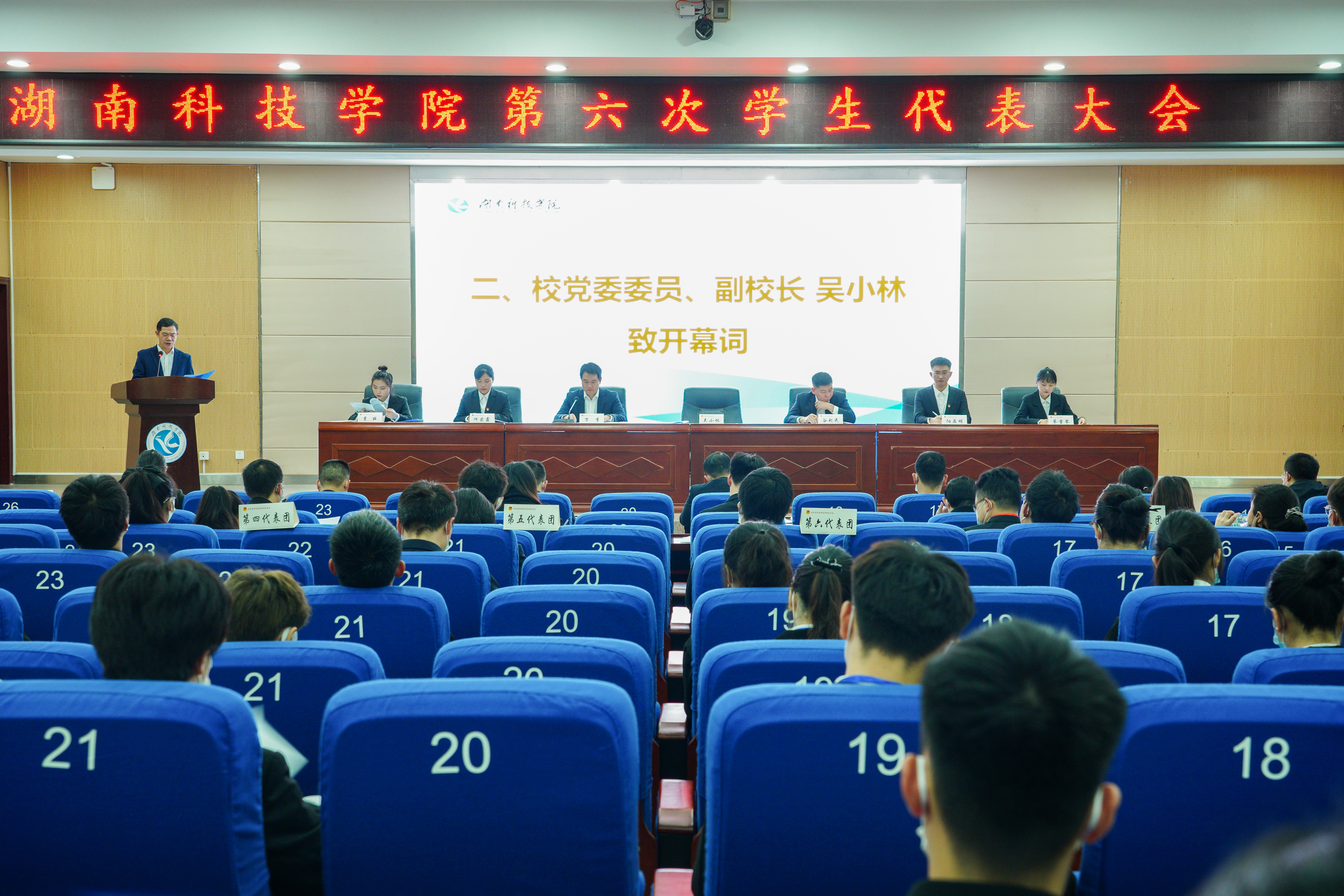 本网讯(通讯员 张湘君)11月19日,学校召开第六次学生代表大会。校党委委员、副校长吴小林,党委学生工作部部长谷利民,校团委书记万李,各教学学院党总支副书记、团总支书记以及来自各教学学院的171名学生代表参加会议。会议由万李主持。