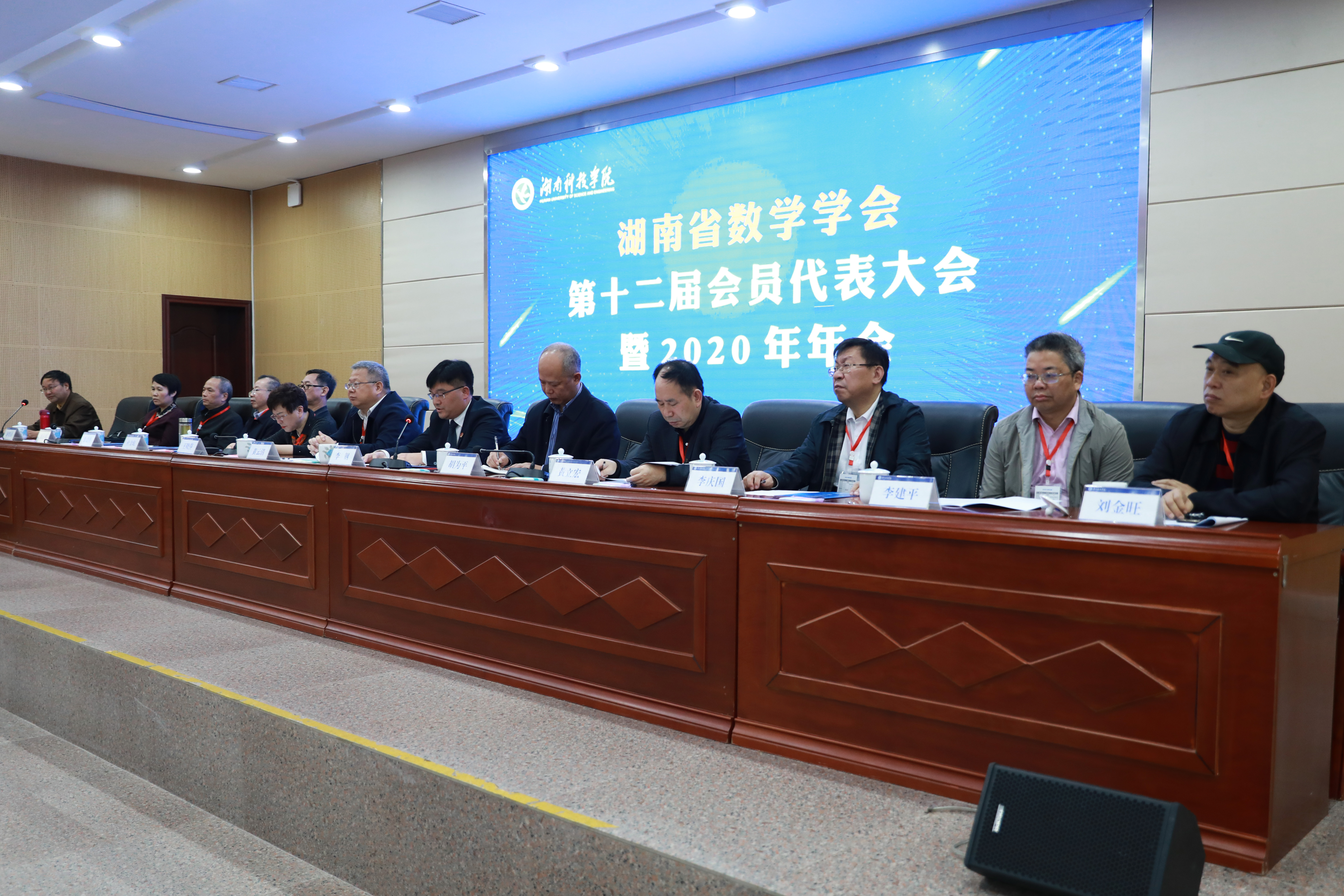省数学学会理事长、湘潭大学党委书记黄云清,世界杯官网党委副书记、校长李钢,湘南学院党委副书记、校长王晓萍,省科协学术工作部部长胡为平,省科协组织人事部调研员、省数学学会第一书记杜金珉,学会副理事长、长沙理工大学副校长黄立宏,副理事长、吉首大学副校长黎奇升,副理事长李庆国、刘再明、李建平、谢资清、刘金旺出席会议。学会秘书长刘建州主持会议。
