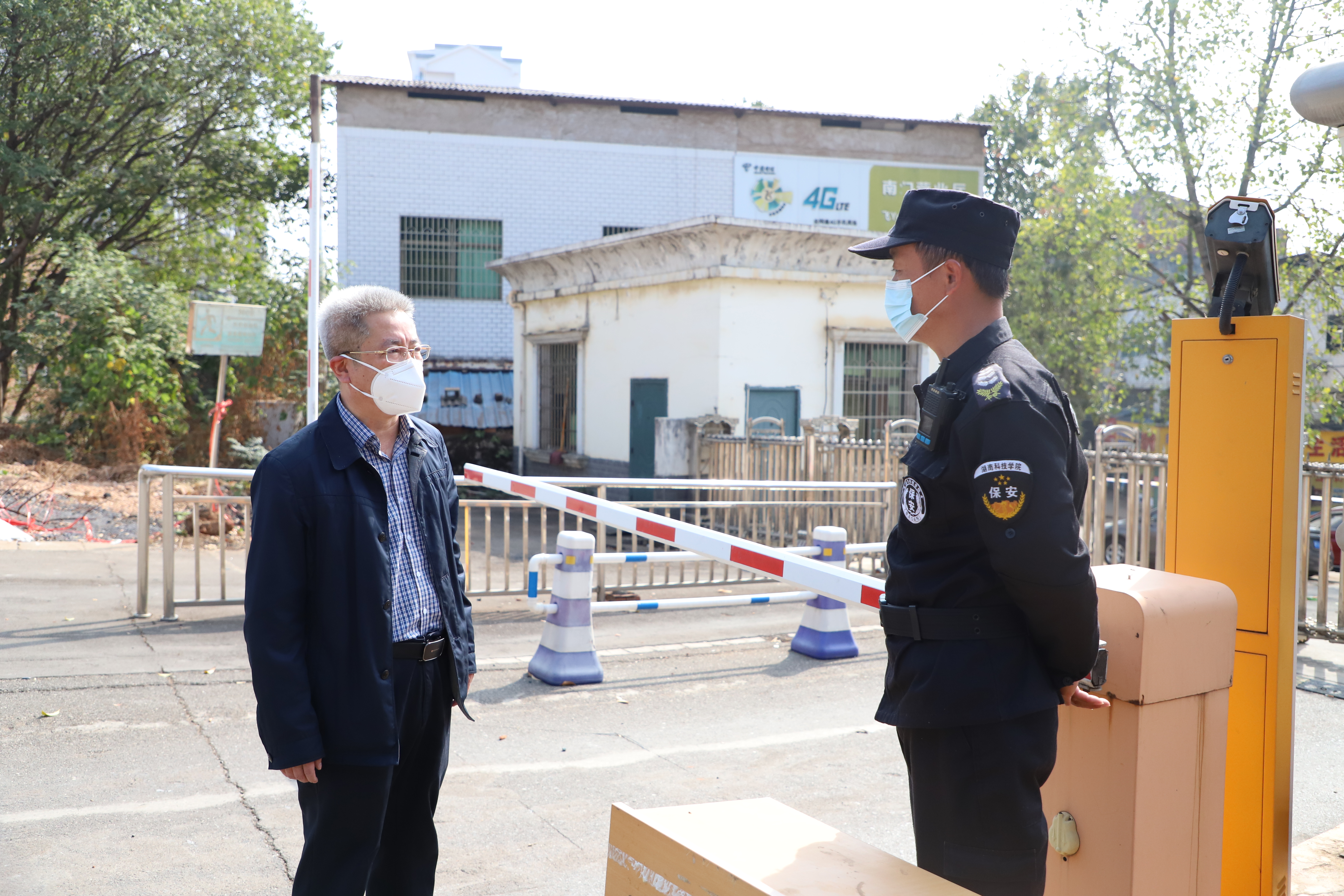 曾宝成重点查看了门岗、校园围墙等重点区域,详细了解门岗值守、进出车辆管理、围墙重点区域管控等情况。