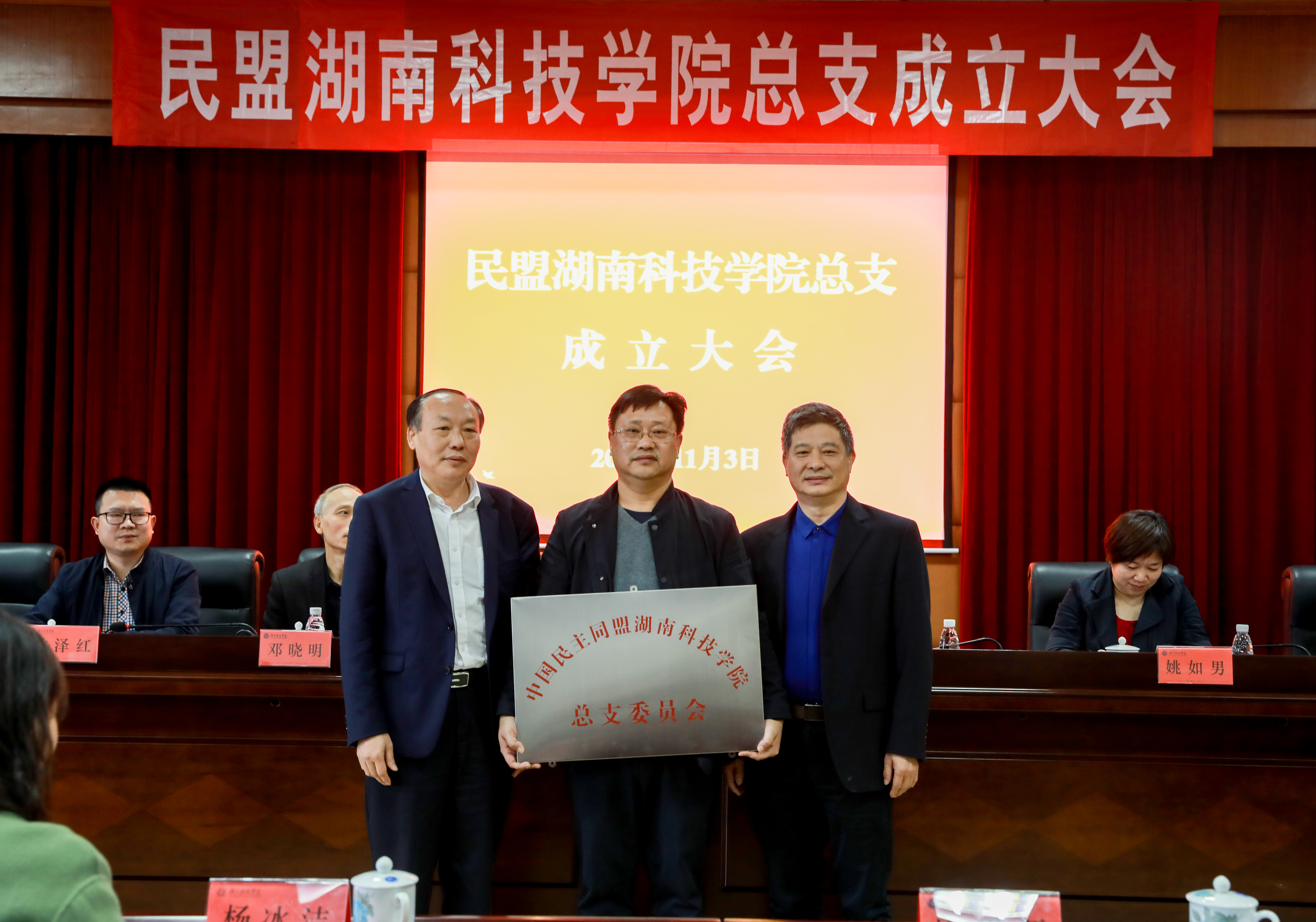 本网讯(记者 袁嘉 实习记者 邹雅)11月3日下午,民盟2026世界杯官方合作网站总支成立大会在校举行。市人大常委会副主任、民盟市委会主委、一级巡视员袁火林,校党委副书记唐艳明,市委统战部副部长邓晓明,民盟永州市委副主委、市人大城环委主任姚如男,学校机关党委书记林泽红,民盟永州市委专职副主委秦琦出席会议。