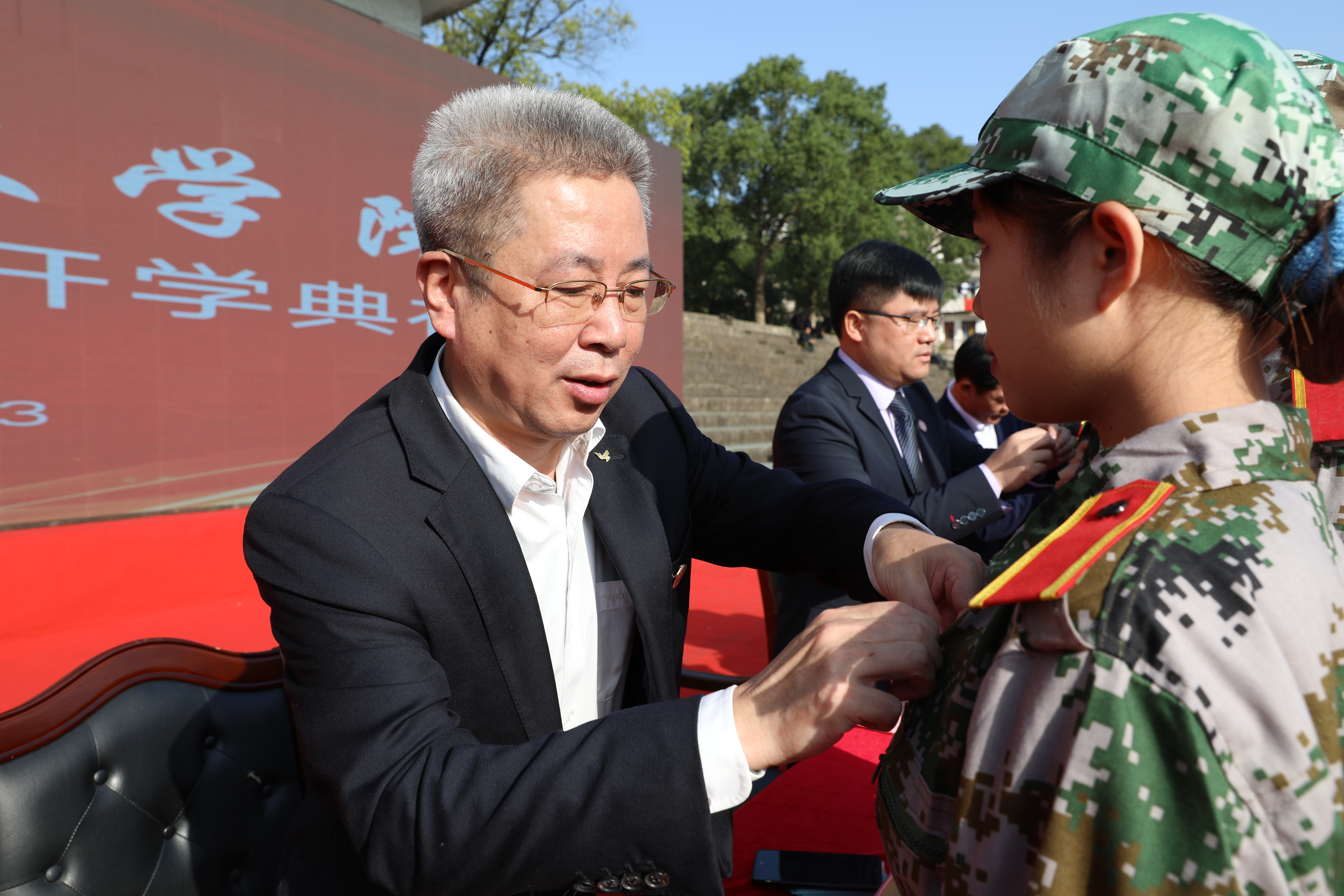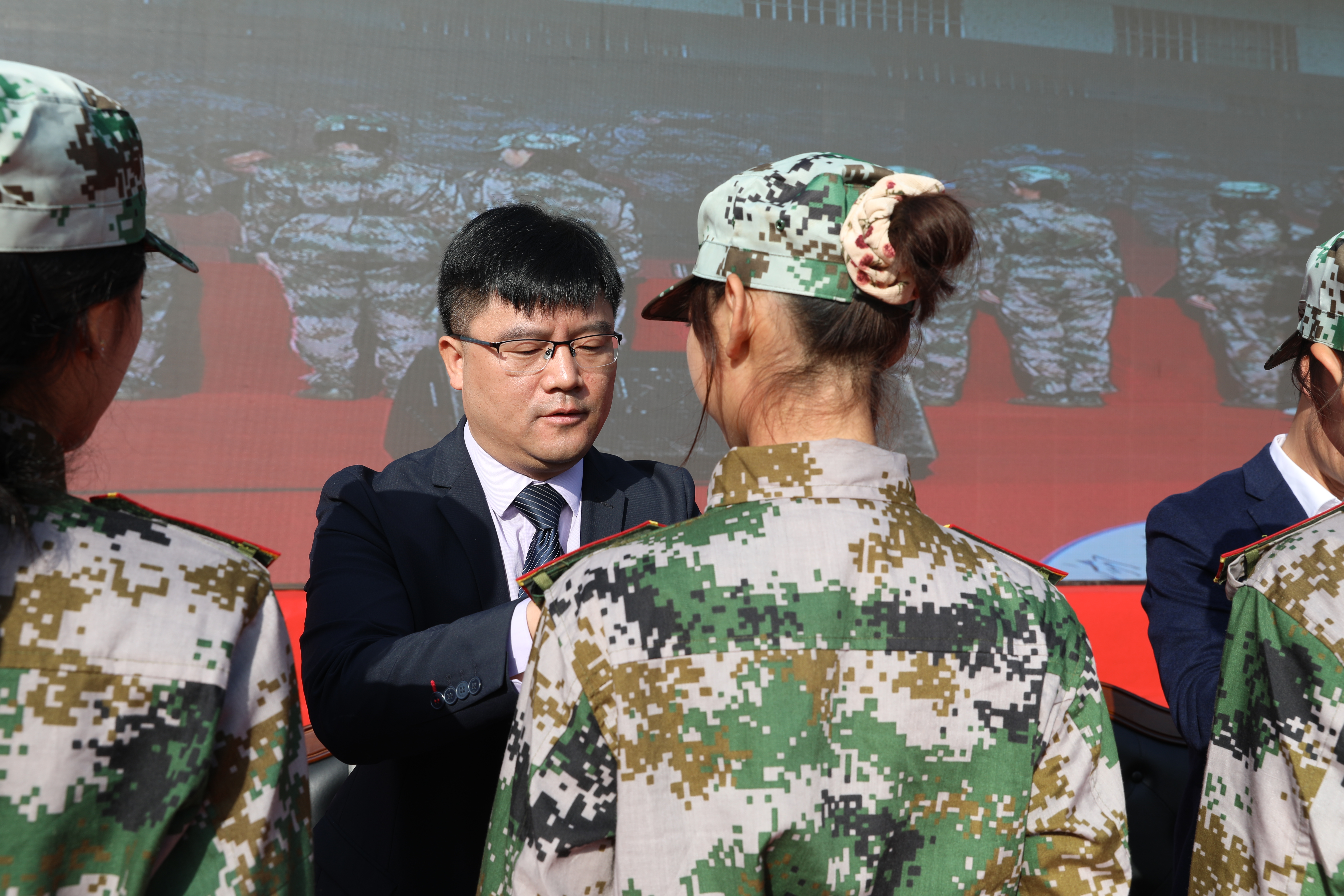 程智开宣读军训表彰文件,对音乐与舞蹈学院等5个军训工作先进单位、二营一连等25个优秀连队、曾健君等30名优秀教官以及桃园学生宿舍三栋A座613等53间优秀宿舍进行表彰。校领导为获奖单位和个人颁奖。