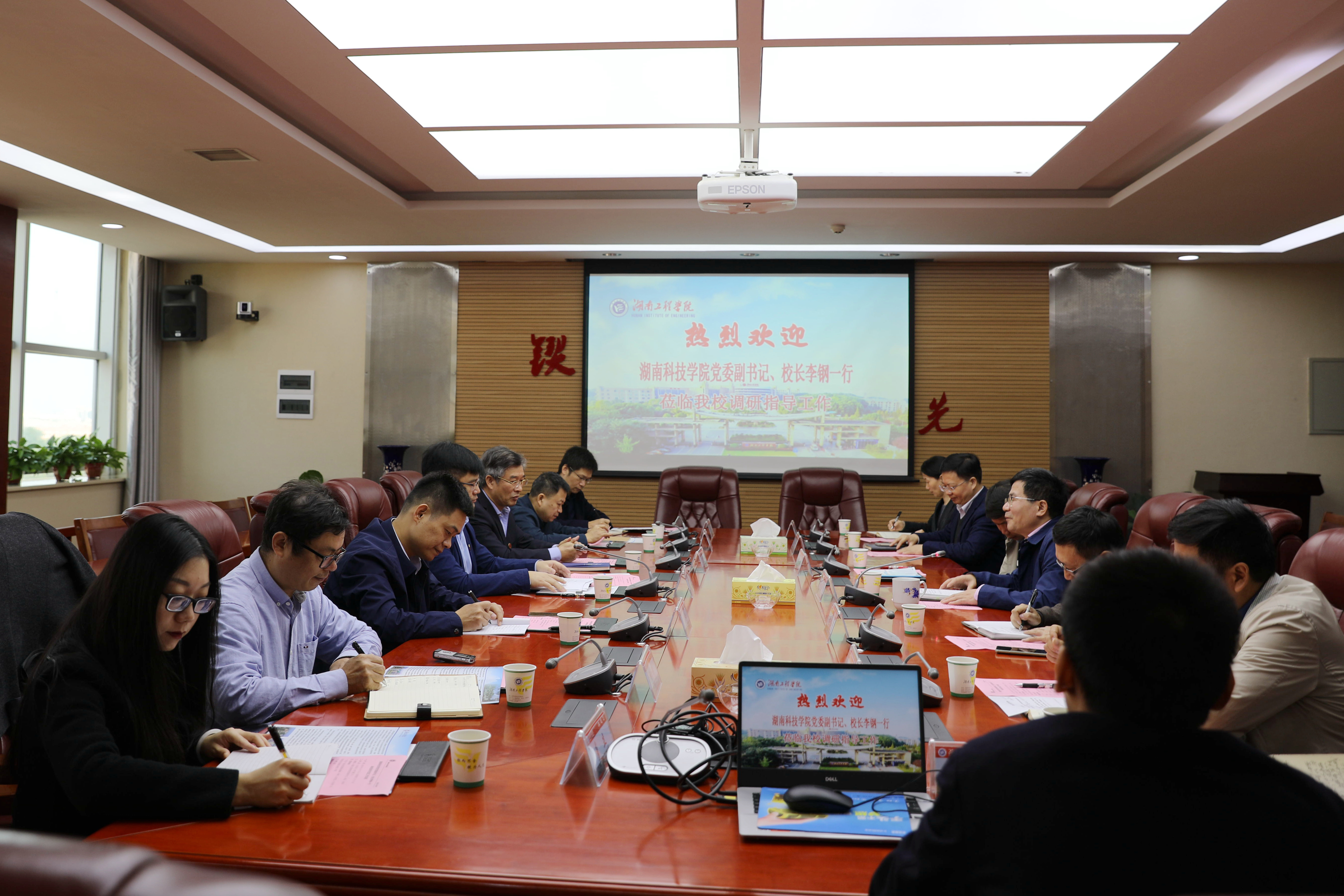在湖南工程学院,易兵介绍了湖南工程学院的发展历程、“十四五”事业发展规划编制、应用型人才培养、学科专业建设、科研奖励、校园基础建设、校地校企合作等方面工作的开展情况,表示两校关系渊远流长,今后要互学互鉴、深化合作,为服务地方发展贡献才智。
