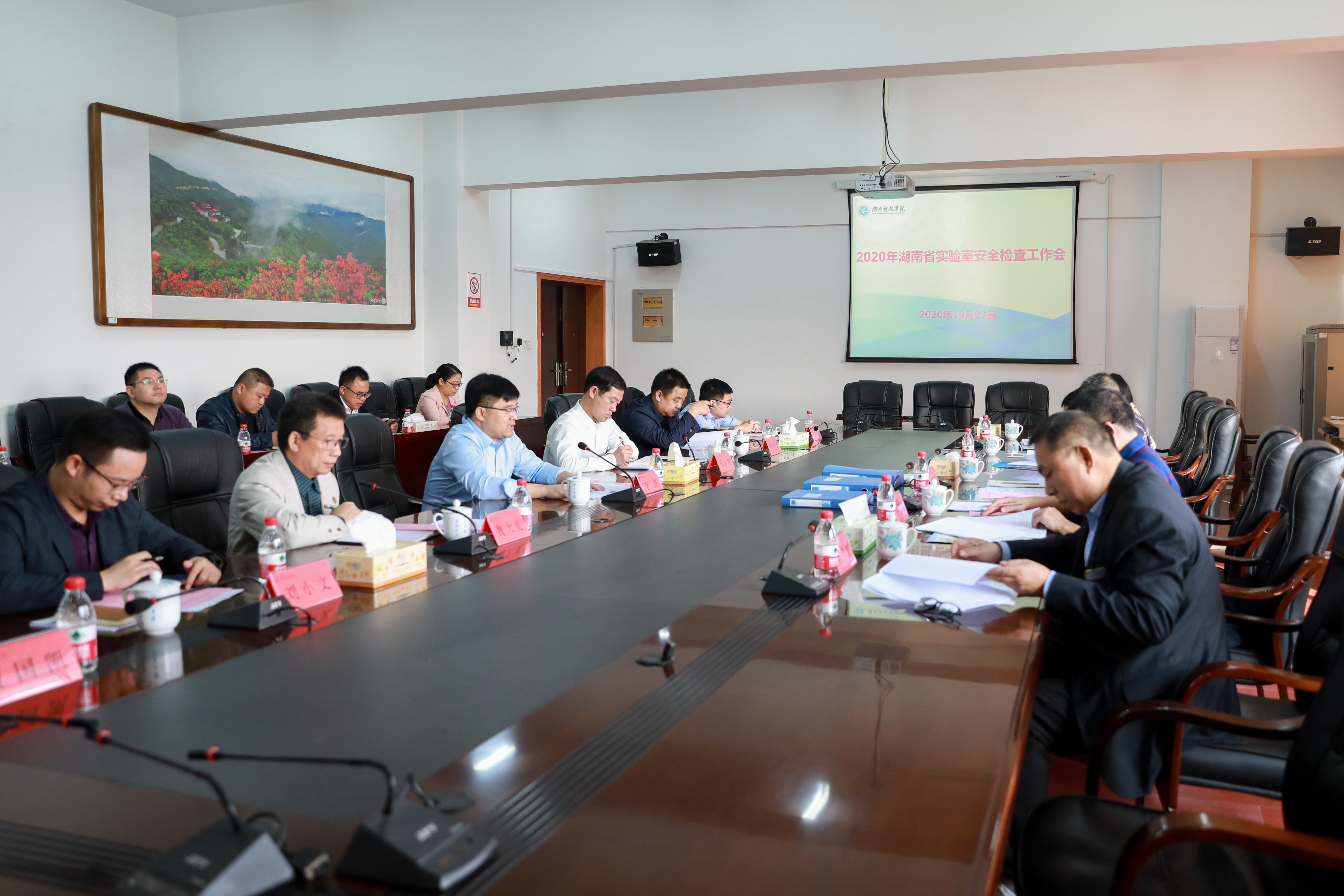本网讯(记者 袁嘉 陈汝婷 陈斯静)10月27日下午,以湖南工业大学教务处副处长胡俊红为组长的省教育厅专家组一行来校,对实验室安全进行现场检查。校长李钢、副校长吴小林出席实验室安全检查工作汇报会。会议由实验实训中心主任魏大宽主持。