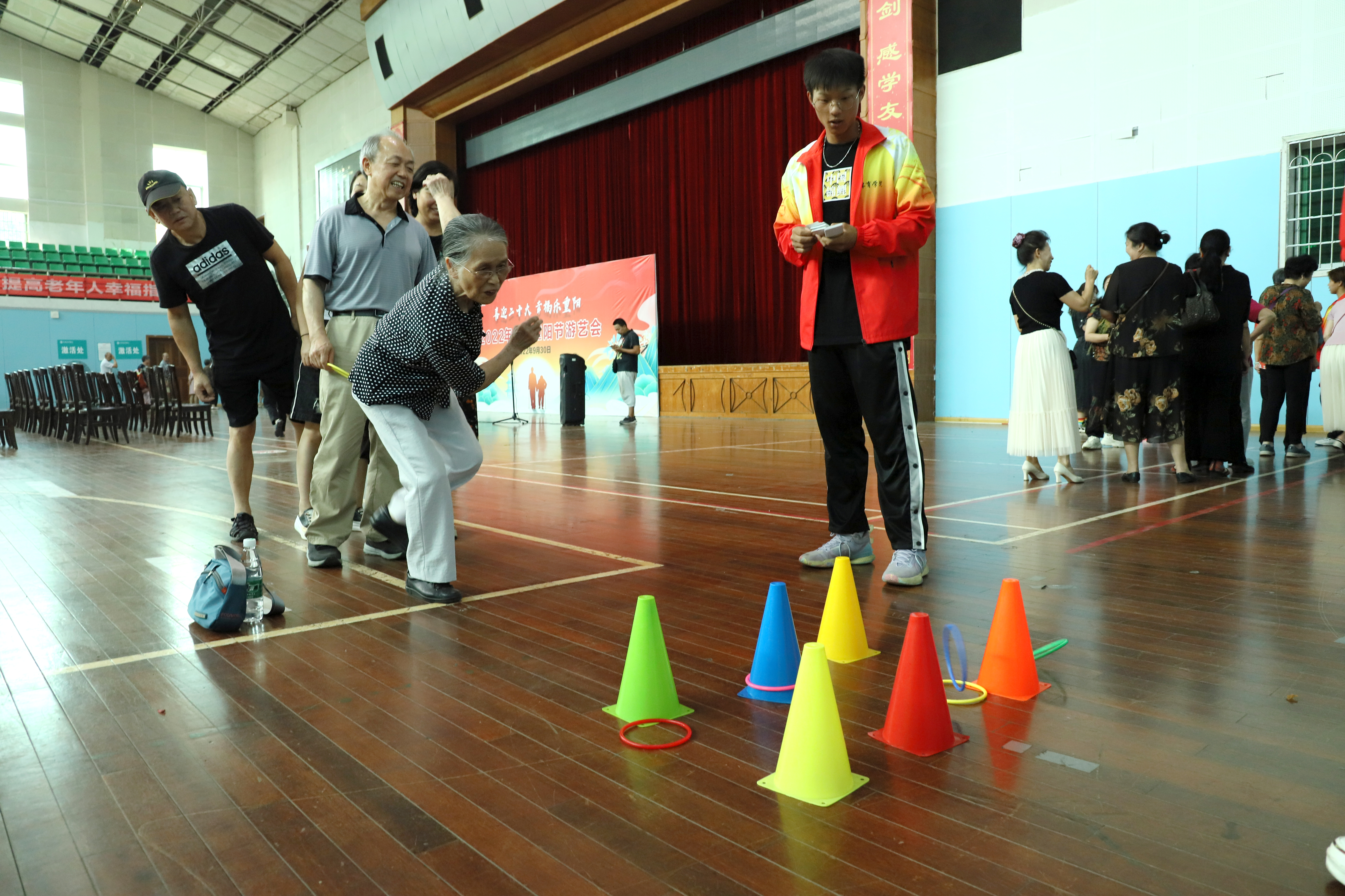 趣味游艺会分为简易保龄球、筷夹乒乓球、投球进筐、蒙面敲锣、投掷飞镖、智慧套圈、吹蜡烛等七项项目。活动现场,老同志们神采飞扬,活力四射,纷纷参与到活动当中,脸上都洋溢着开心的笑容。