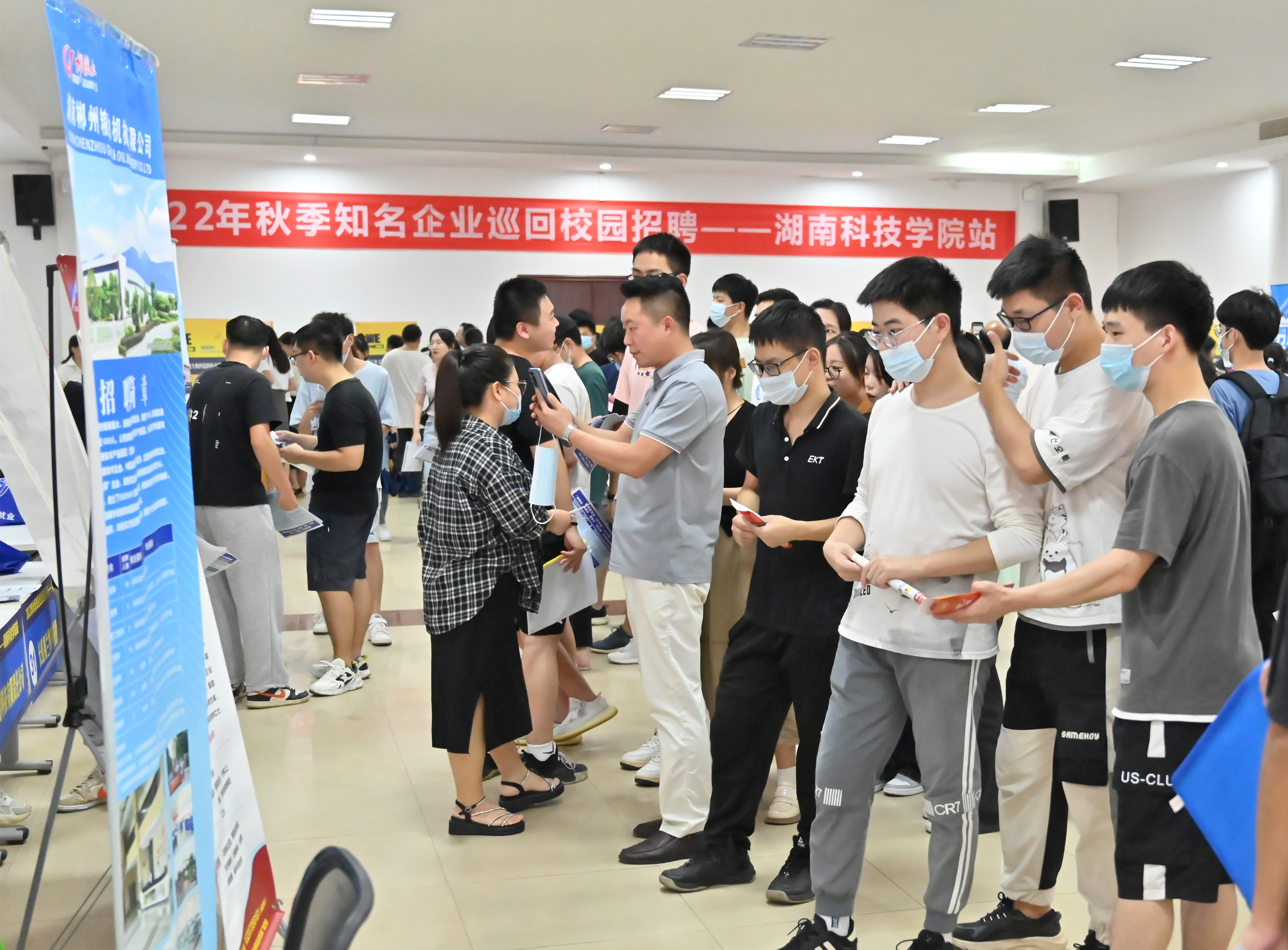 本网讯 9月27日下午,2022年秋季湖南知名企业巡回校园招聘会在世界杯官网举行,本次招聘会共吸引了中国建设银行湖南省分行、中国移动通信集团湖南有限公司、广东领益智能股份有限公司等41家用人单位参会,提供就业岗位2600余个,812名毕业生到现场参加竞聘。