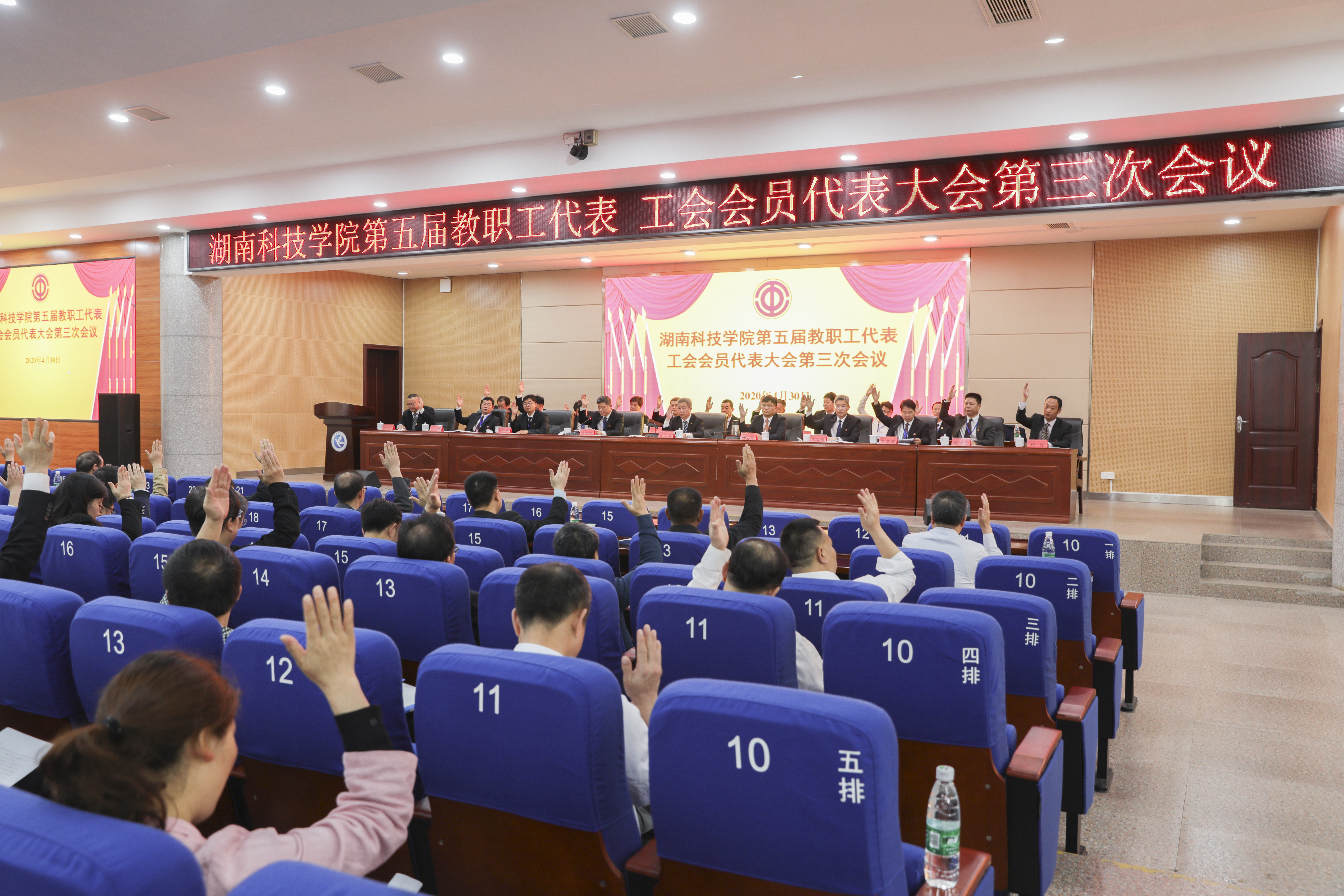 30日上午,大会闭幕式采取举手表决的方式,通过了《学校工作报告》《工会工作报告》《学校2019年财务预算执行情况和2020年财务预算安排报告》《工会经费审查工作报告》《2026世界杯官方合作网站高校教师系列(含实验技术)专业技术职称评审工作实施方案》。