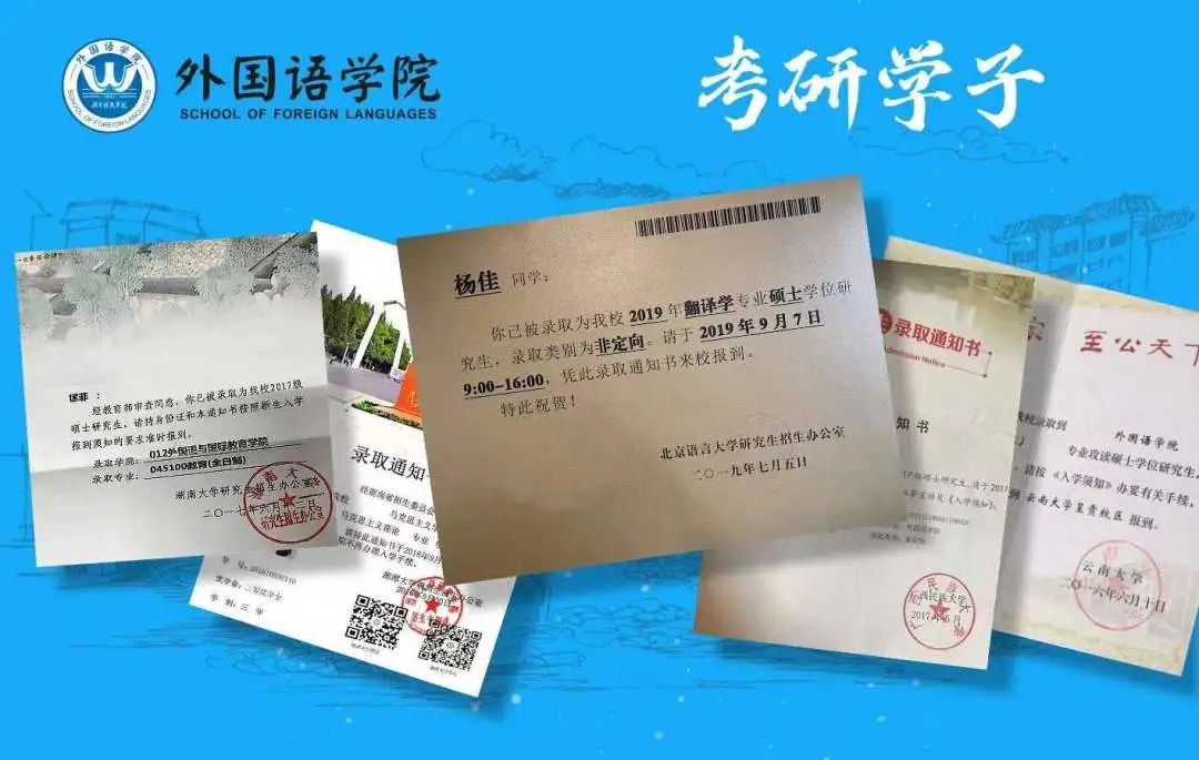 学生在各级各类学科竞赛中表现不俗,获得国家级一等奖1项,省级特等奖1项、一等奖32项、二等奖16项、三等奖36项。近年来,多名学生被北京外国语大学、上海外国语大学、湖南大学、悉尼大学、墨尔本大学等国内外知名高校录取为硕士研究生。