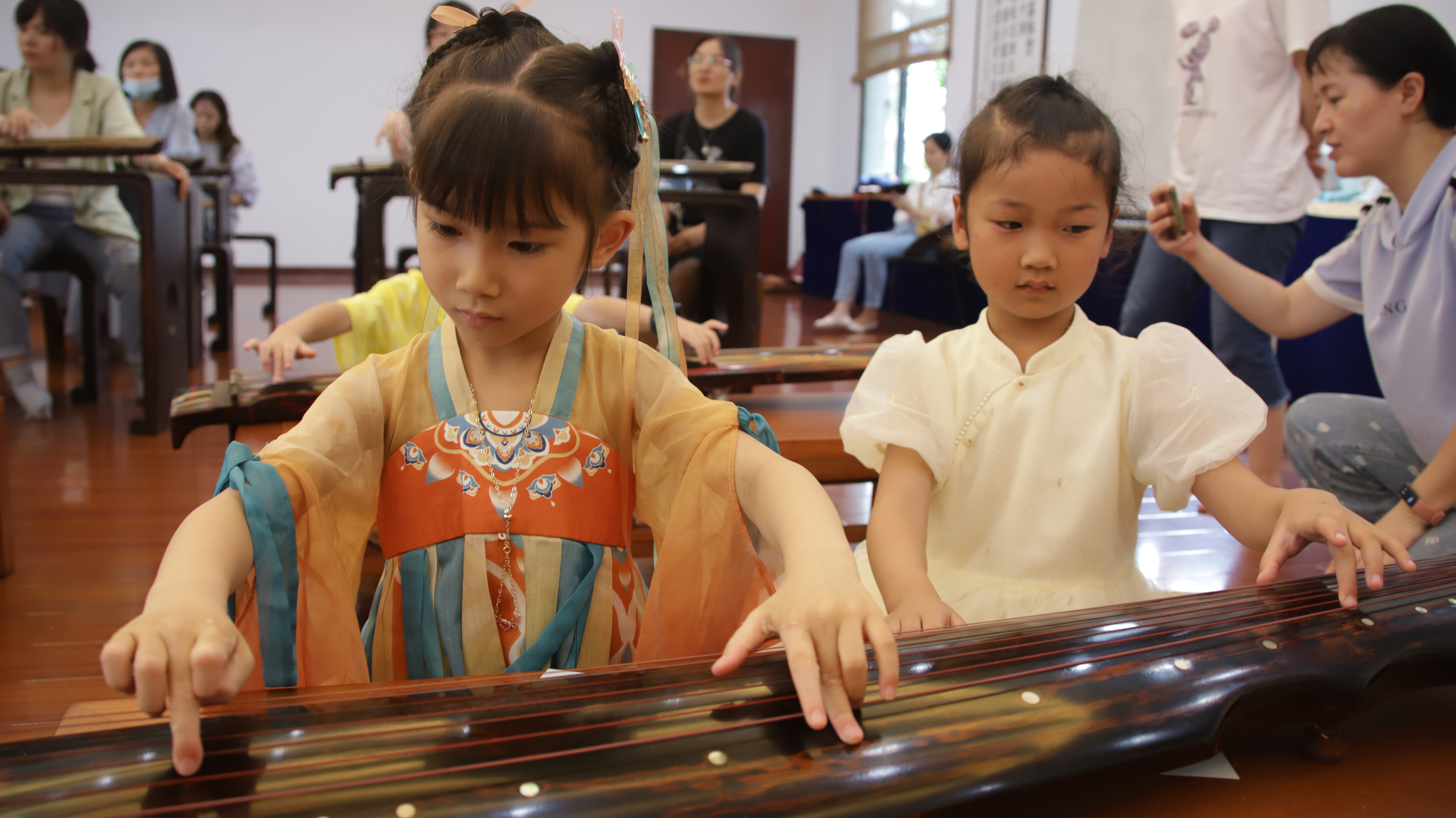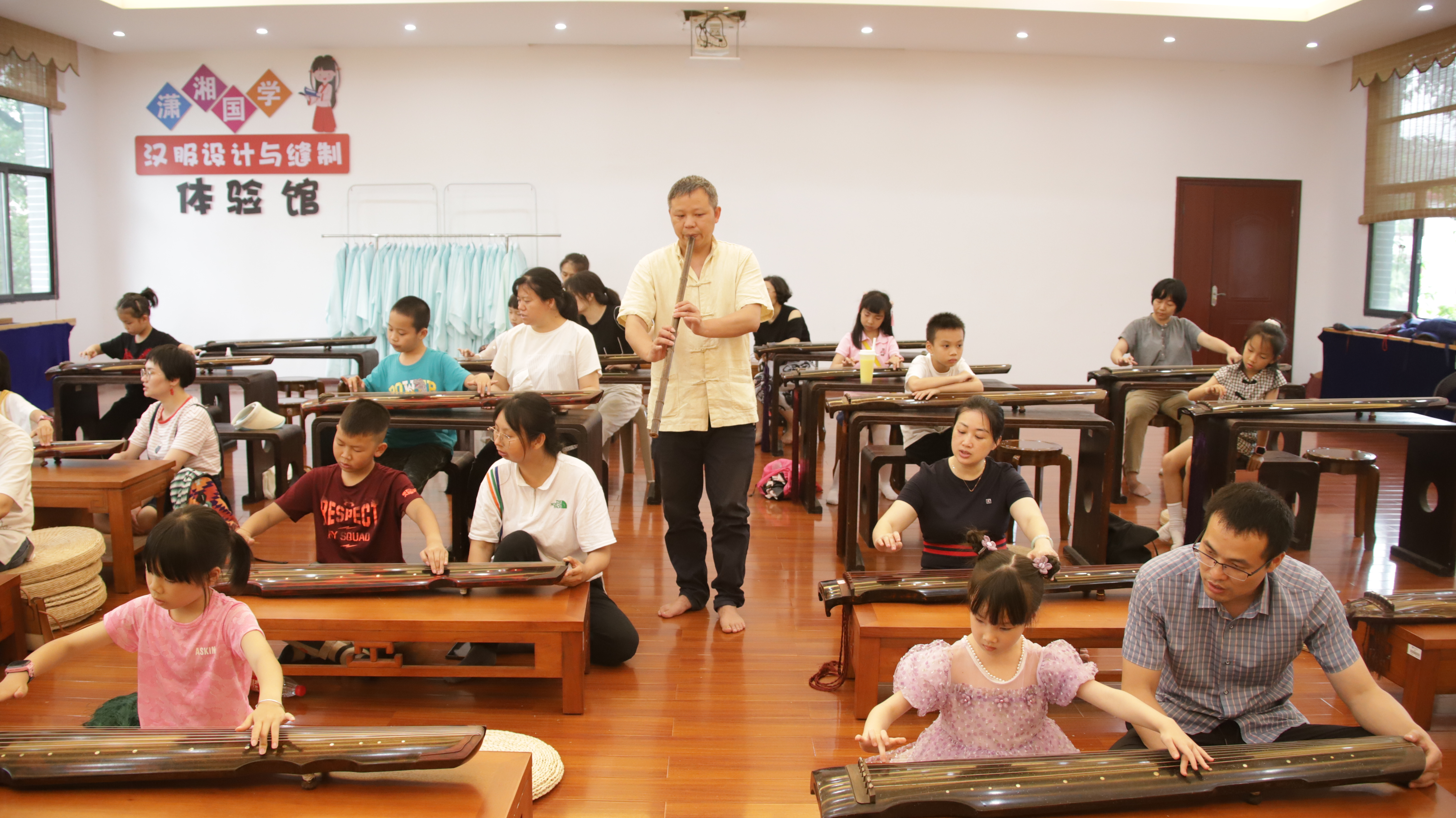 活动在“树家风、立家规”讲座中开始,国学研究院院长周建刚给家长及孩子们,上了一堂有关永州历史文化名人优良家风的国学课。在汉服礼仪课上,夏翠兰老师不仅给学生解答了汉服是什么、如何穿着及传承汉服等问题,而且让家长和孩子们一起穿上汉服去感受儒学气息,再现传统礼乐文明和六艺精髓。九疑琴派是永州本土异常亮丽的文化资源,欧阳平彪老师现场教给家长和孩子们九疑古琴中抹、挑、勾、剔的指法,让他们于琴声中放下焦躁、返回初心。永州摩崖石刻资源丰富,历史悠久,敖炼老师的碑刻传拓课堂通过观察拓片和动手施墨,给予家长和孩子们以不一样的非遗技艺体验。