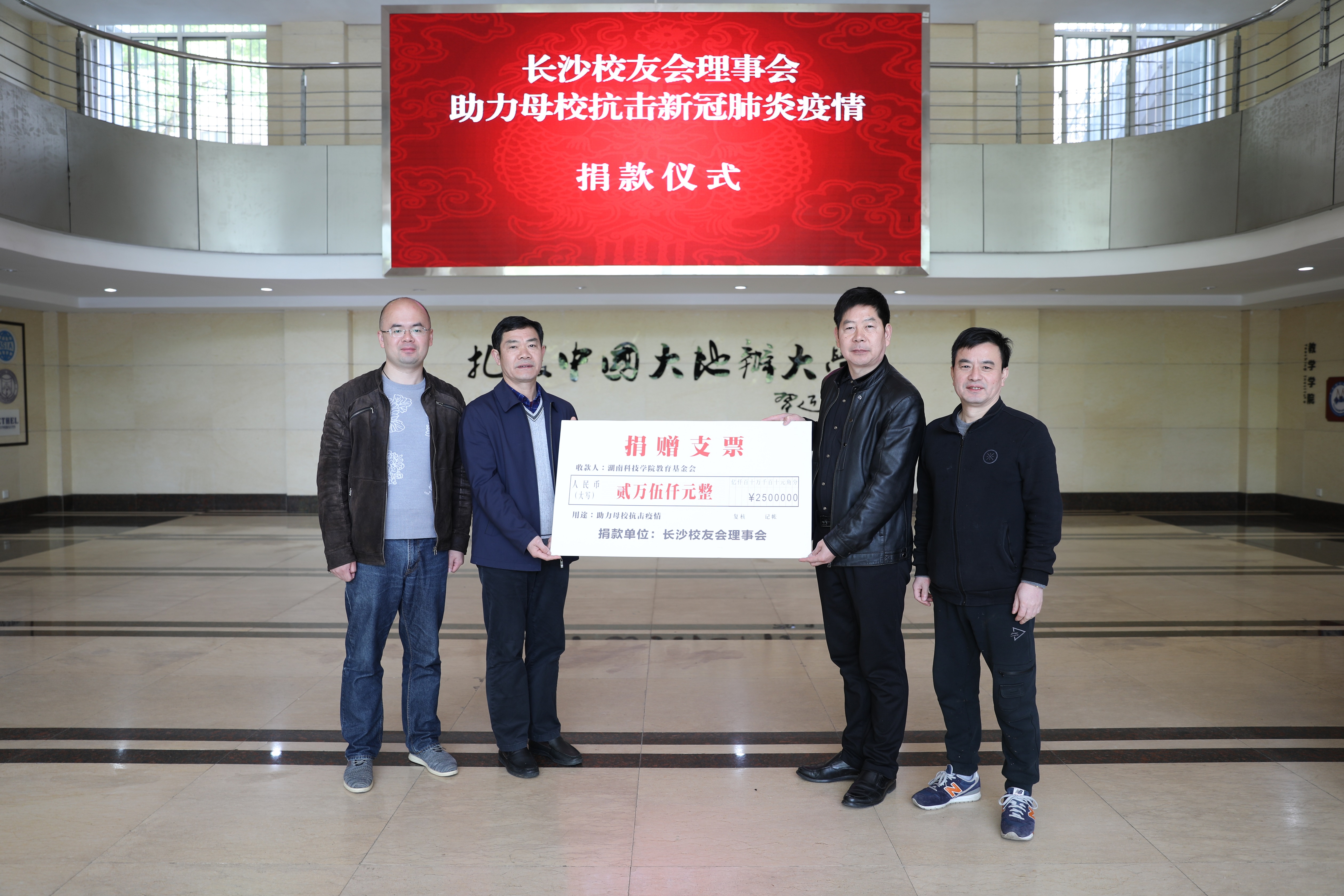本网讯 4月14日,世界杯官网长沙校友会理事会捐款25000元,助力学校防控工作。学校党委委员、副校长吴小林出席捐赠仪式。