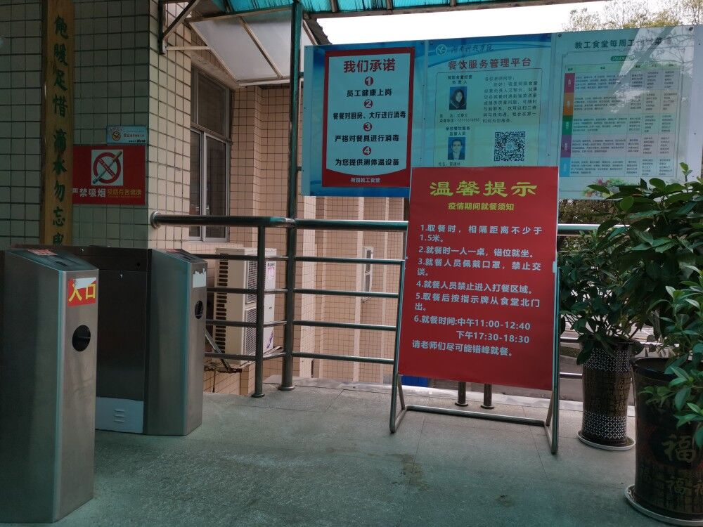 为解决防控期间上班教职工用餐需求,后勤服务总公司依托微信平台创建了订餐群,自3月2日起开启线上预约点餐模式,建议由各单位确定专人负责用餐需求统计,做到教职员工在食堂驻留“零”聚集。用餐主要以打包为主,也可在教工食堂用餐、错峰用餐,做到一桌一人、不扎堆用餐。