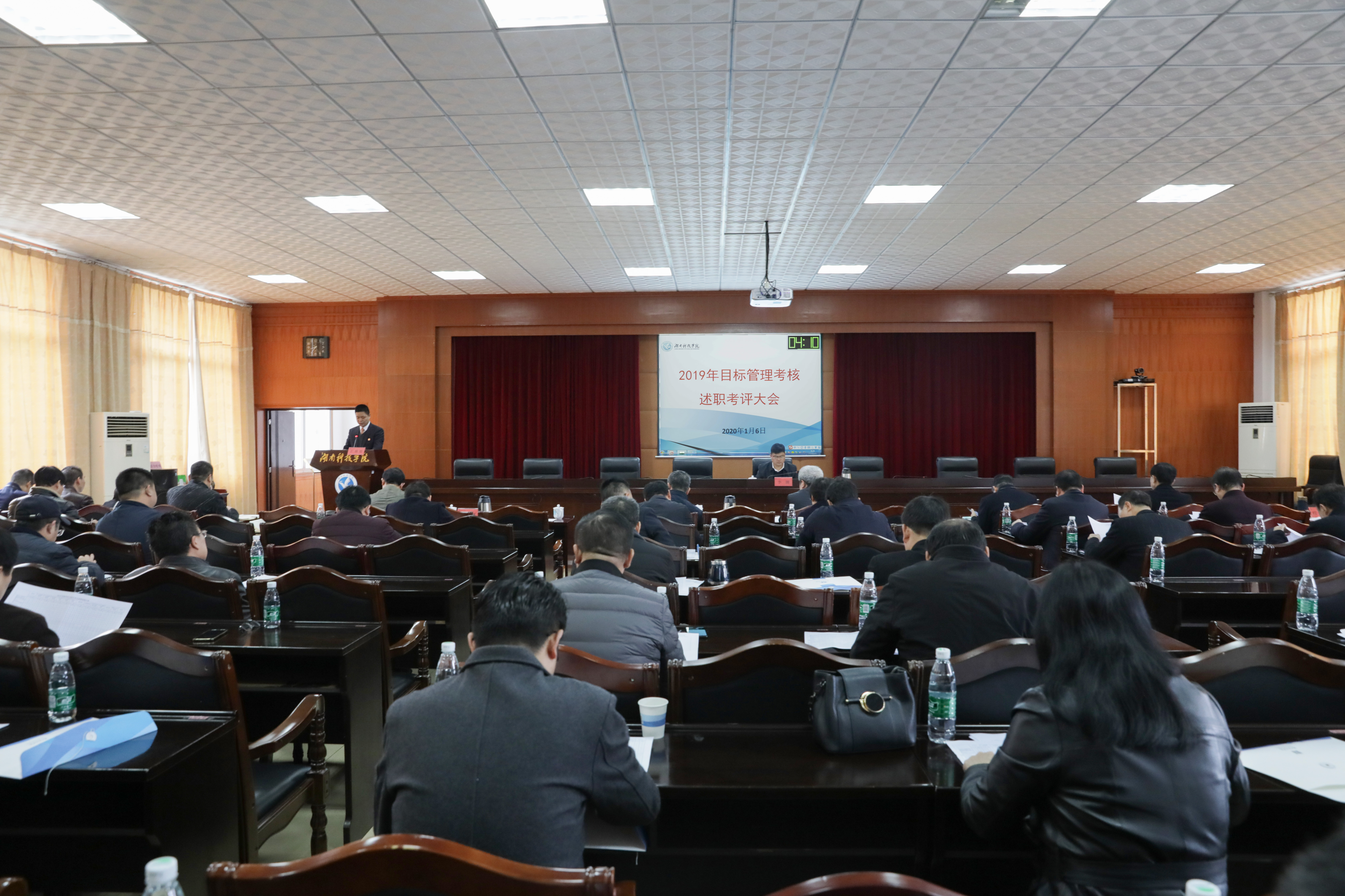 会上,44个教学学院及职能部门的负责人代表本单位就2019年度常规管理和目标管理任务完成情况、取得成效、工作中存在的不足与展望等作述职汇报。