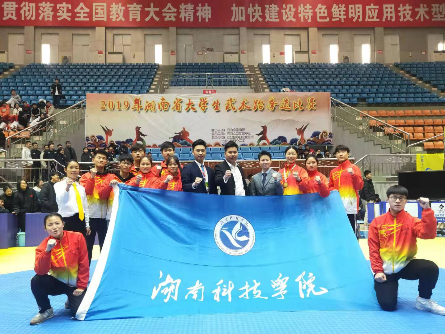 本网讯 12月8日至13日,由省教育厅主办的2019年湖南省大学生武术跆拳道比赛在湖南人文科技学院举行。世界杯官网运动员取得3金2铜的好成绩。