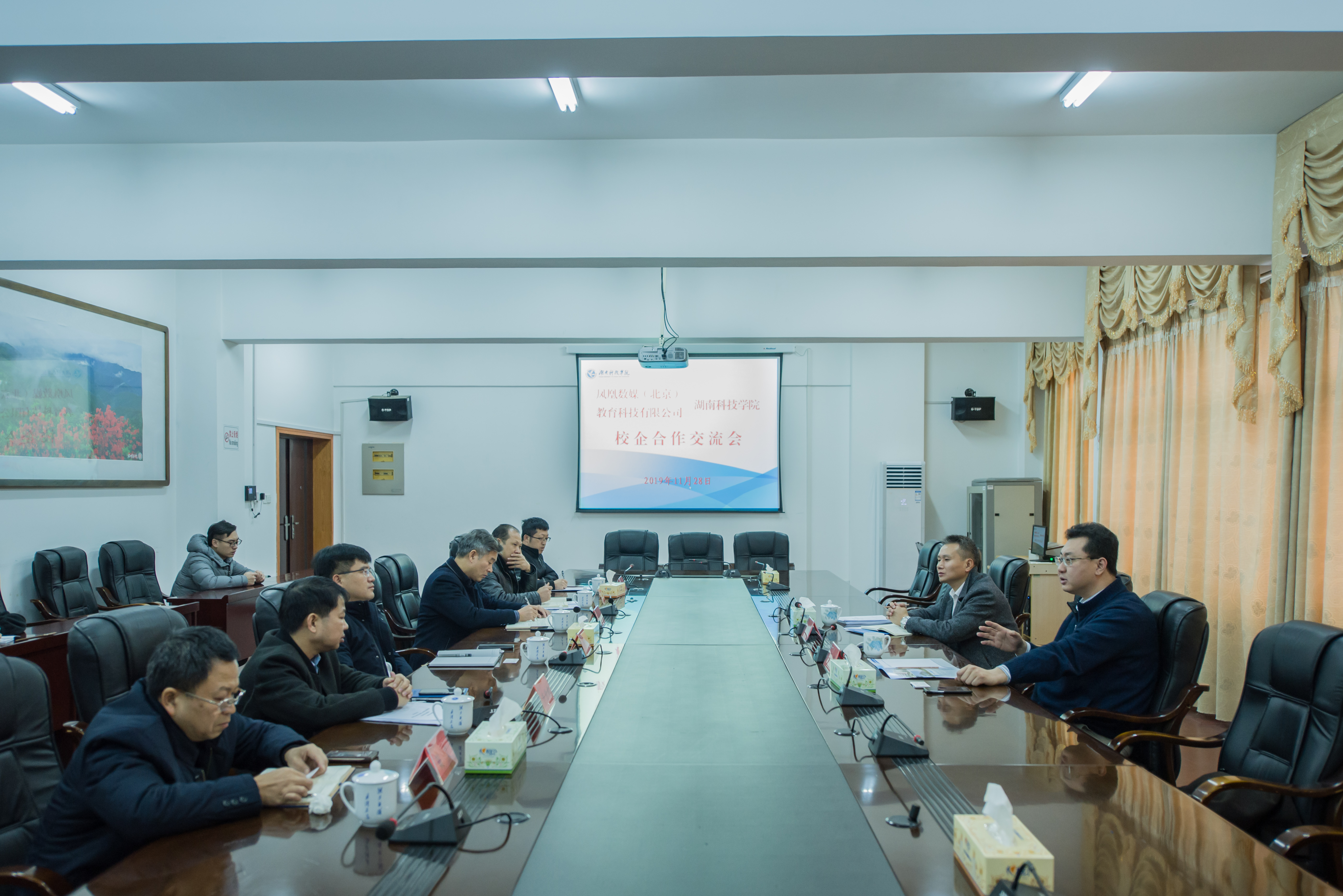 本网讯 11月28日下午,凤凰数媒教育科技有限公司董事长王阳、湖北区域经理李家文一行来世界杯官网开展校企合作交流。校长李钢,副校长宋宏福、李常健,教务处、传媒学院相关负责人参加交流会。