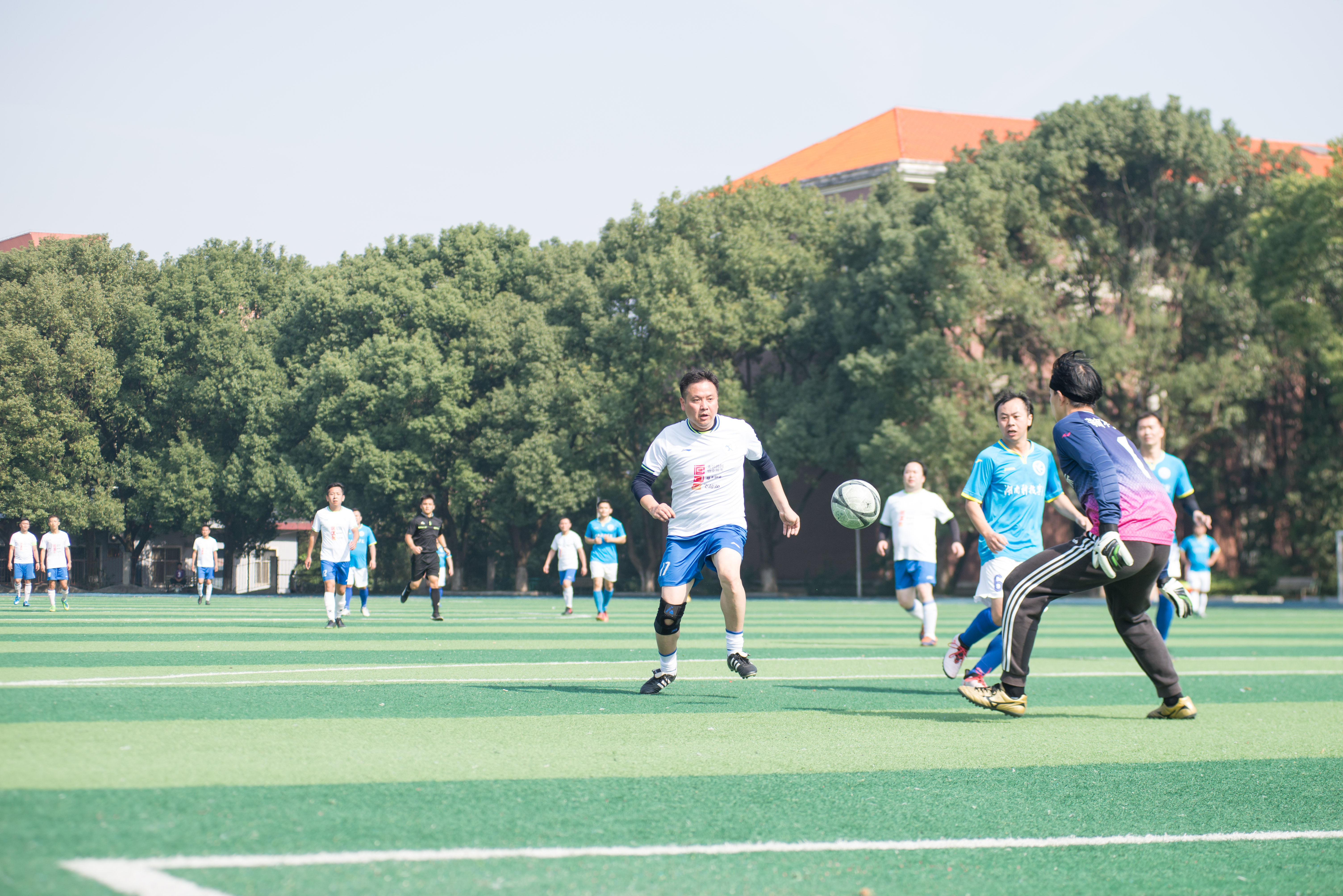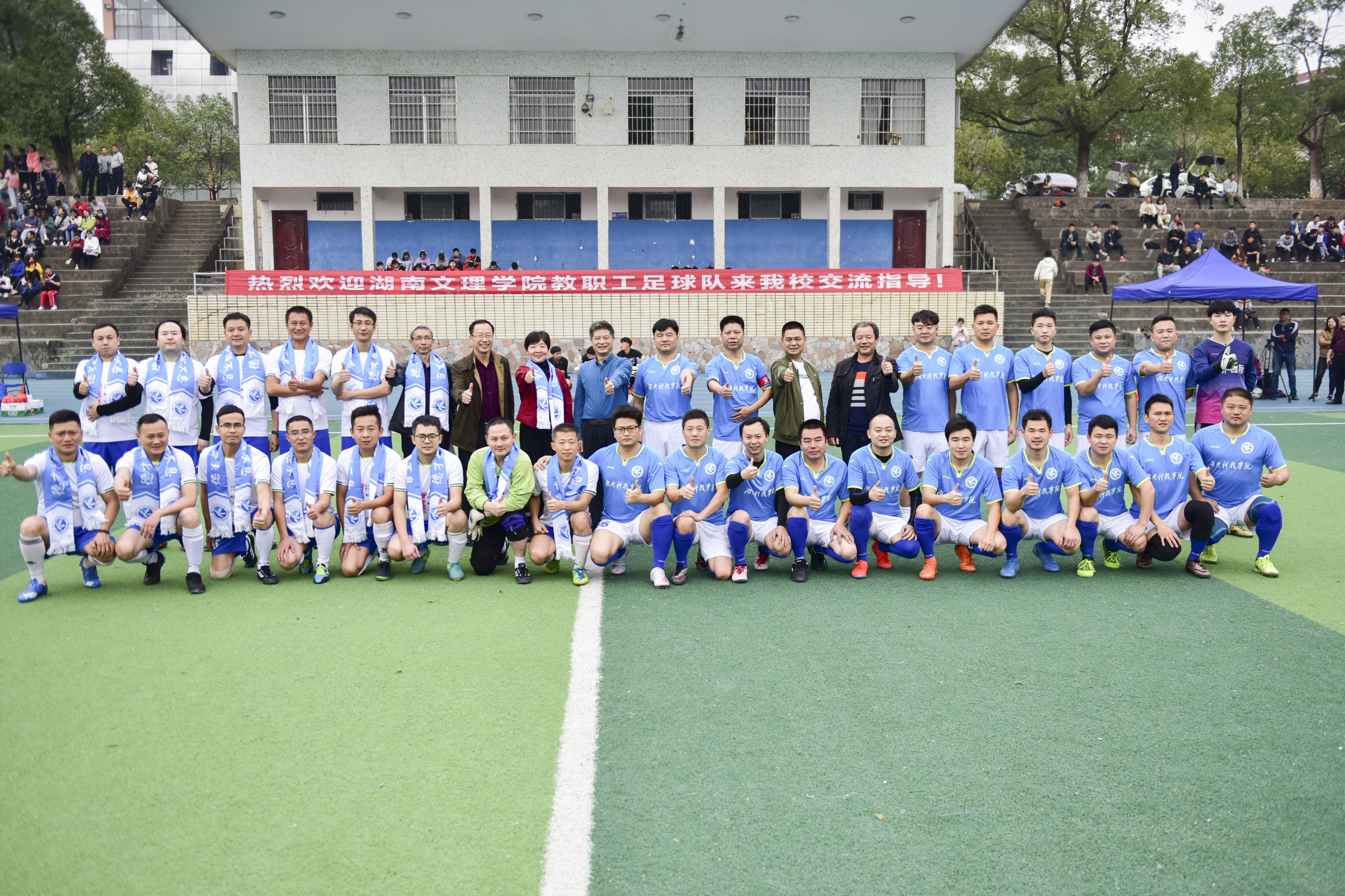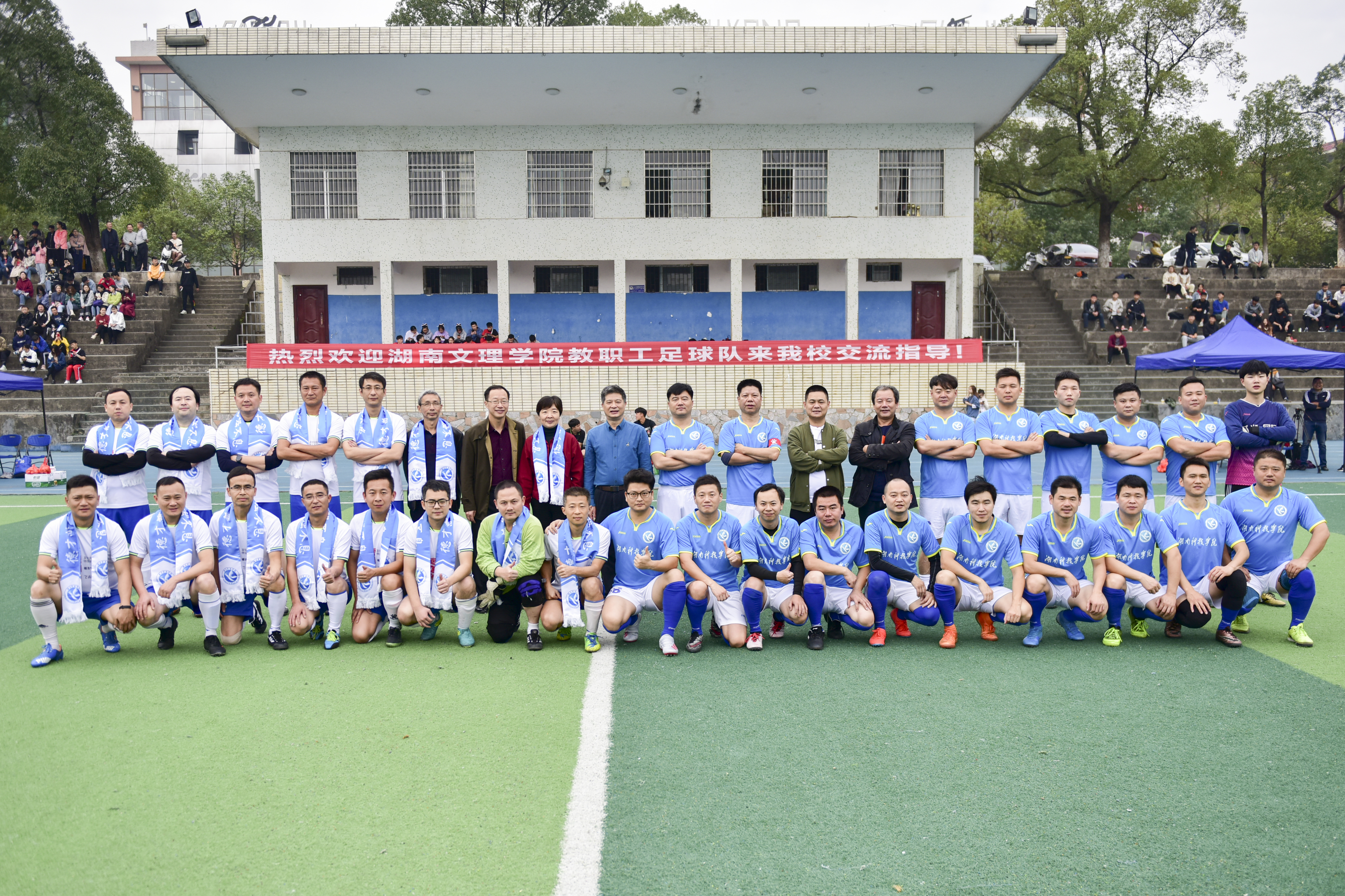 本网讯 11月24日,湖南文理学院教职工足球队一行14人来校交流,与世界杯官网教职工足球队进行了一场足球友谊赛。校长李钢、副校长程智开参加比赛,党委副书记、工会主席唐艳明到场为比赛开球并观赛。