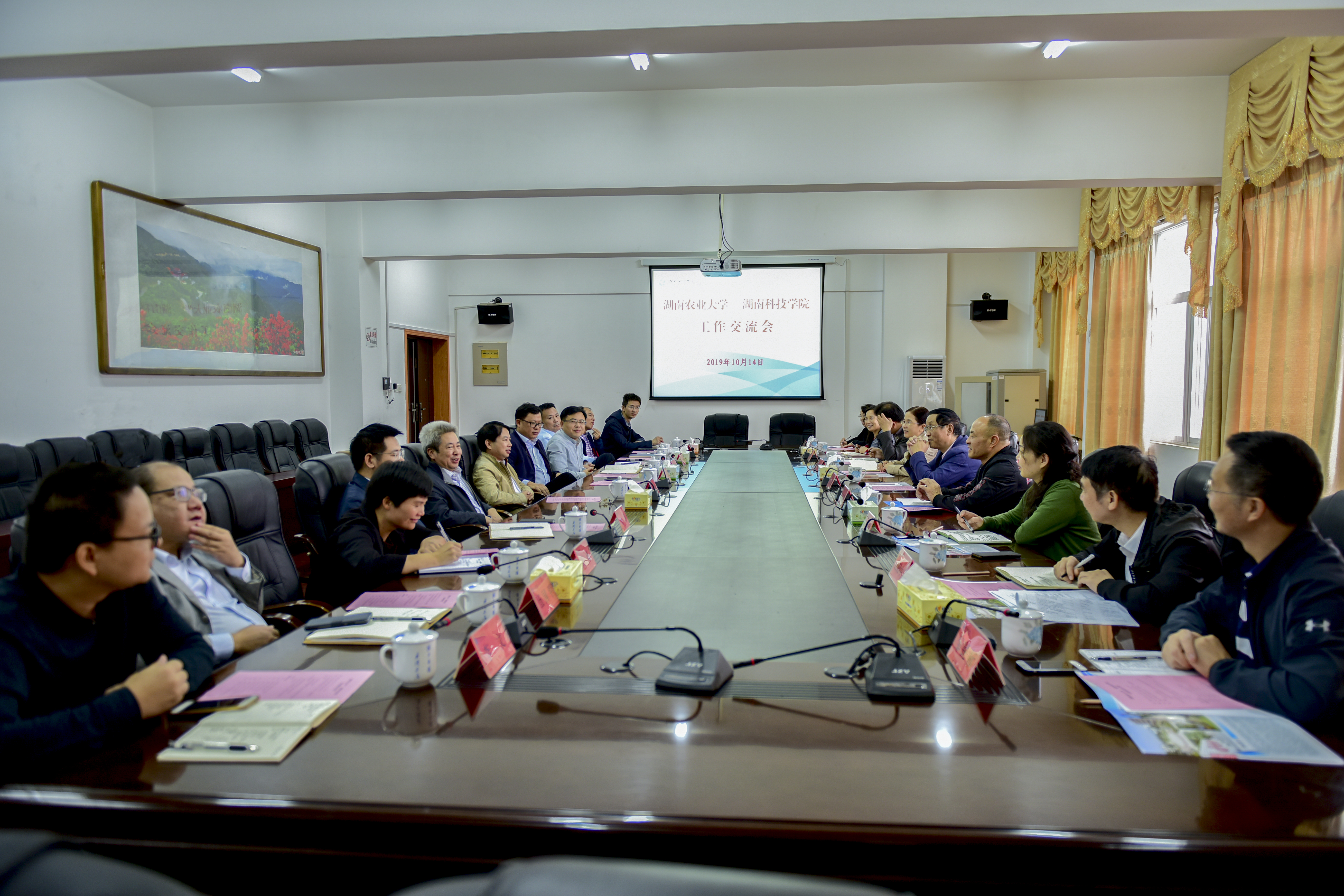 本网讯 10月14日上午,湖南农业大学副校长易自力一行9人来校考察交流,党委书记曾宝成,副校长李常健,纪委、监察处、教务处、计划财务处、资产管理处、审计处、基建处、实验实训中心、采购中心(招投标中心)等职能部门负责人参加交流座谈。座谈会由李常健主持。