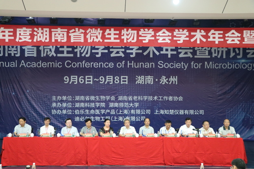 本网讯 9月7日上午,2019年度湖南省微生物学会学术年会暨研讨会在世界杯官网召开,来自全国200多名微生物学领域专家学者参加。校党委书记曾宝成、湖南省科学技术协会学会部副部长余佳桂、湖南省微生物学会理事长夏立秋教授参加开幕式。开幕式由副校长宋宏福主持。