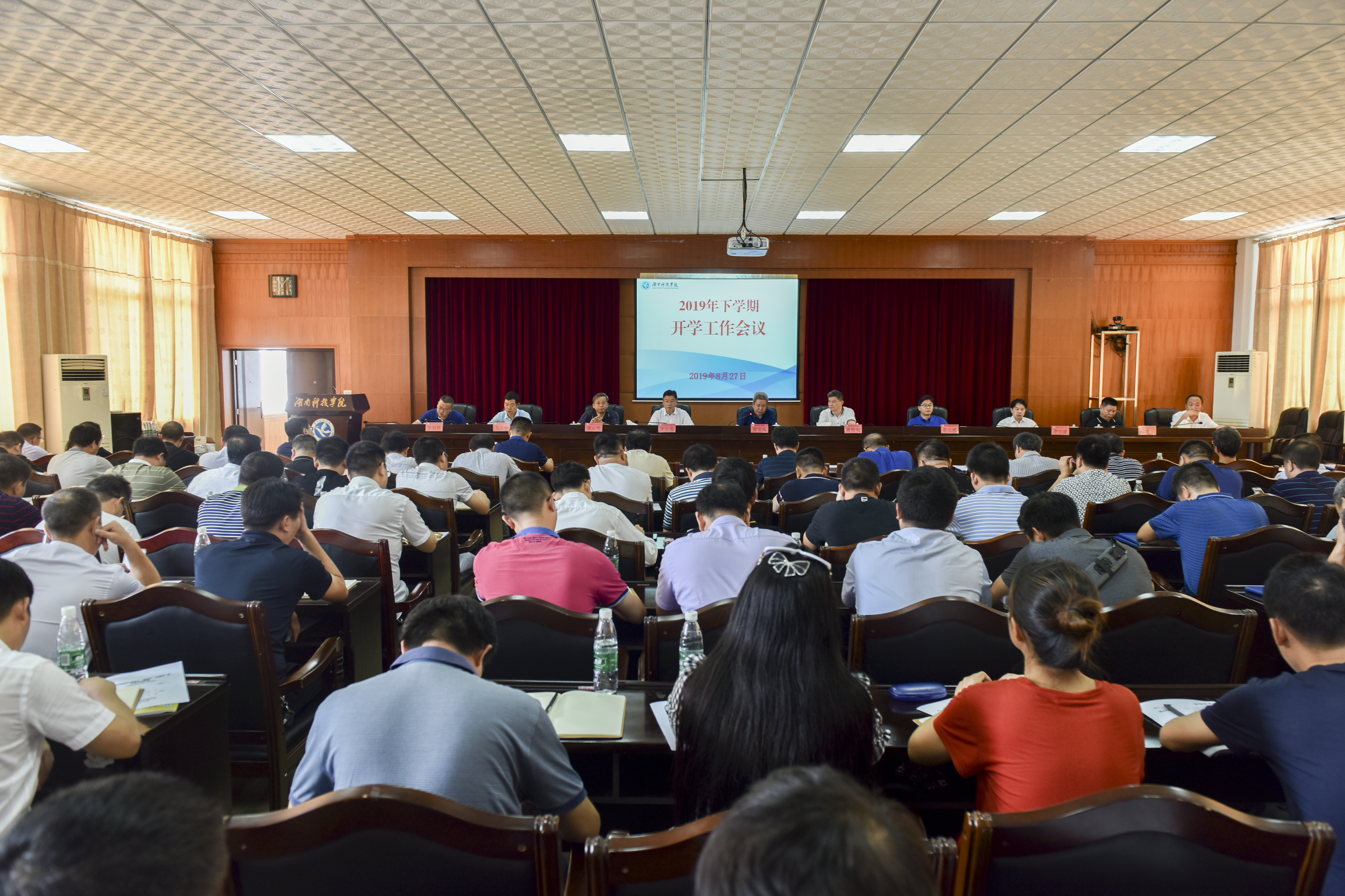 本网讯 8月27日上午,学校召开2019年下期开学工作会议。党委书记、校长曾宝成总结回顾上半年工作,安排布置开学及下半年工作。校领导唐艳明、宋宏福、彭立威、郑山明、李常健、吴小林、程智开,党委委员、组织部长何福林 ,党委委员、宣传统战部长杨涛及全体中层干部参加会议。会议由校党委副书记唐艳明主持。