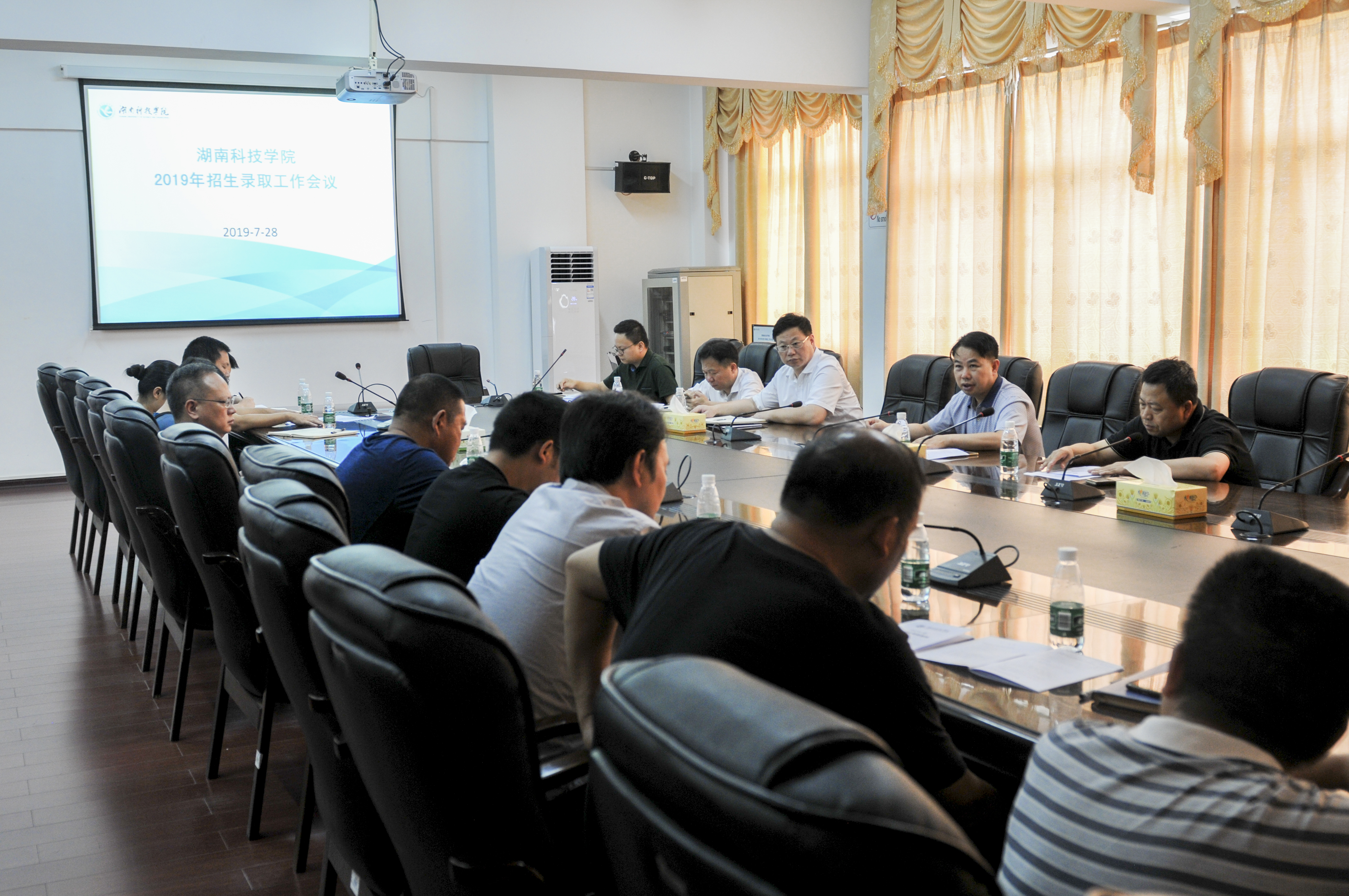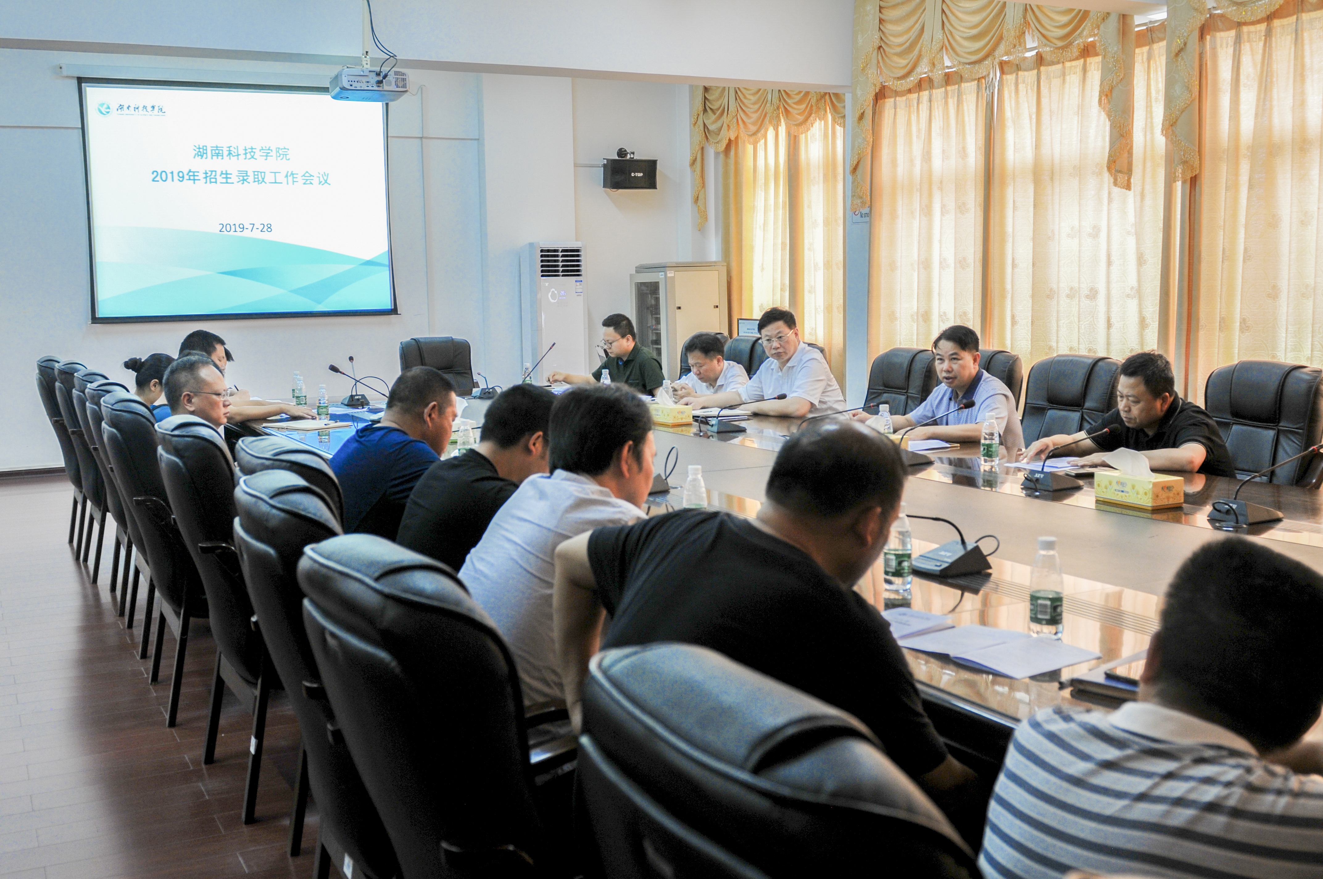 本网讯 根据湖南省教育考试院《关于做好2019年普通高等学校招生录取工作的通知》文件精神, 7月28日下午,学校召开2019年招生录取领导小组工作会议及录取工作协调会,学校招生工作领导小组全体成员、相关职能部门负责人、各院录取工作人员,会议由副校长李常健主持。