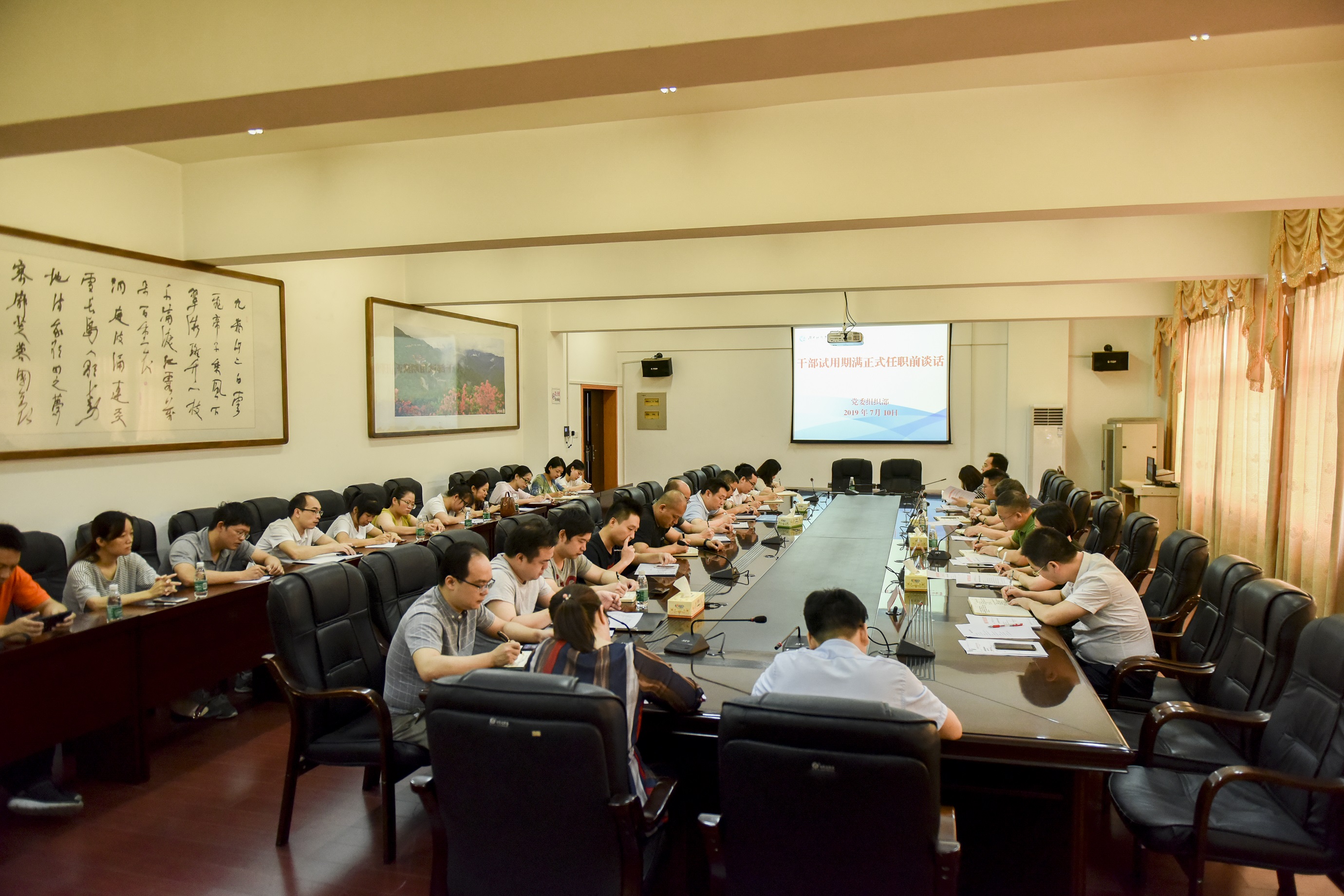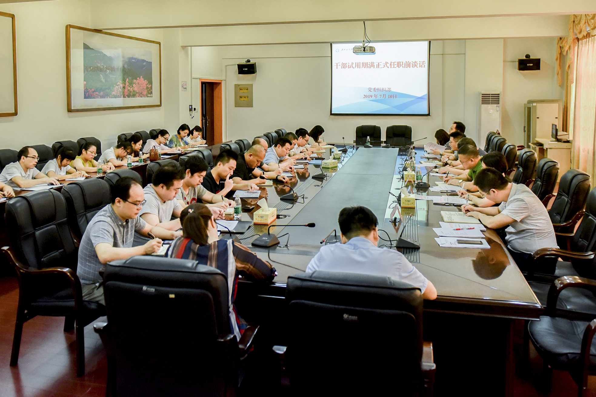 本网讯 为贯彻落实全面从严治党要求,提高干部廉洁自律意识。7月10日上午,学校分别举行试用期满转正科级干部、部分岗位调整科级干部任前谈话。党委副书记唐艳明,党委委员、组织部长何福林,纪委副书记、监察处长黄栋出席。会议由何福林主持。