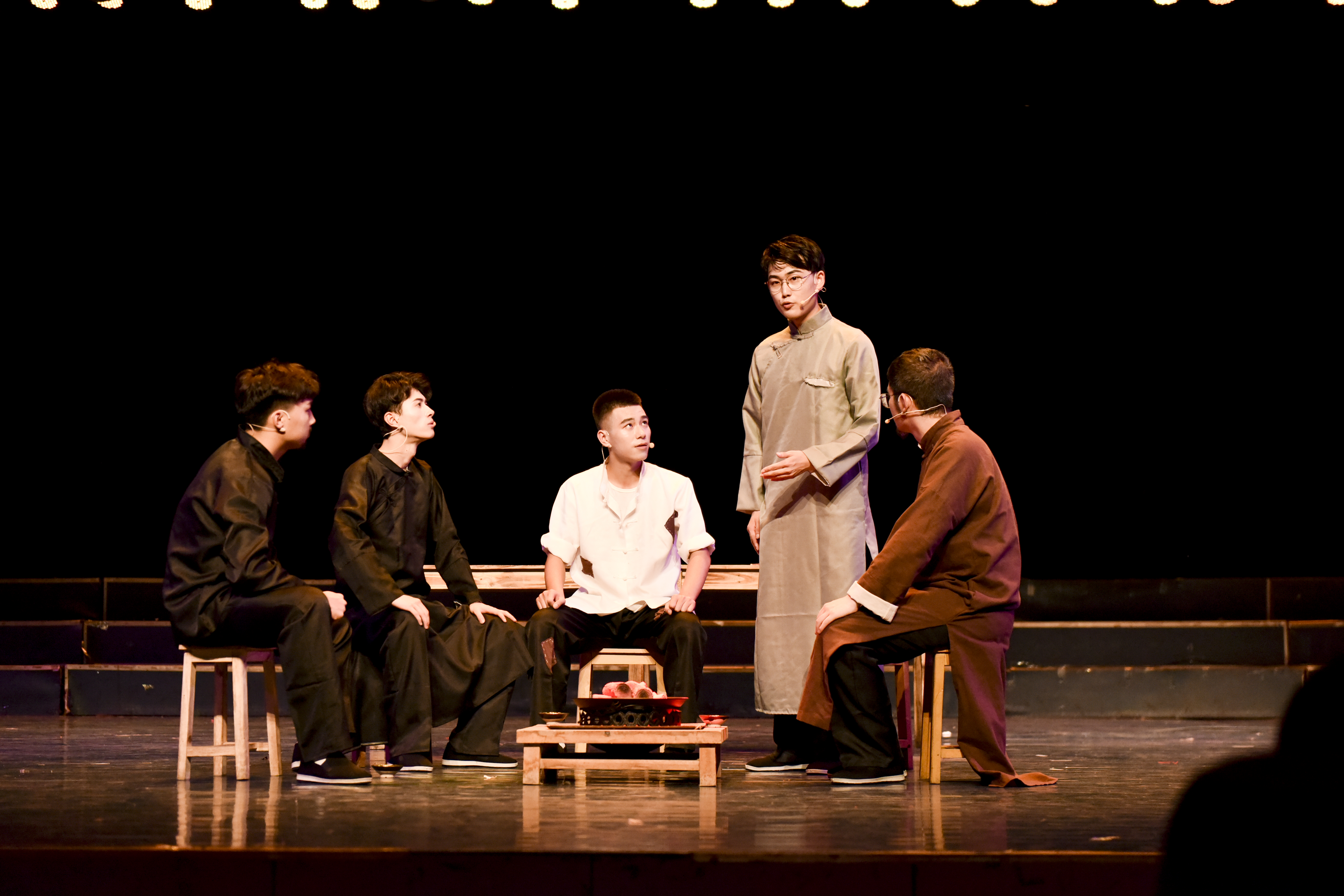 话剧分为起因铺垫、矛盾冲突加剧、正式起义和后辈瞻仰遗迹四个部分,讲述的是1927年12月,青年陶铸随警卫团参加广州起义失败后,收到上级指示回到家乡祁阳发动革命的故事。舞台上,同学们把学到的专业知识充分融入到剧中,带着对革命先辈的无比崇敬,把那段难忘的斗争岁月艺术地展现在观众面前,令观众为之动容。