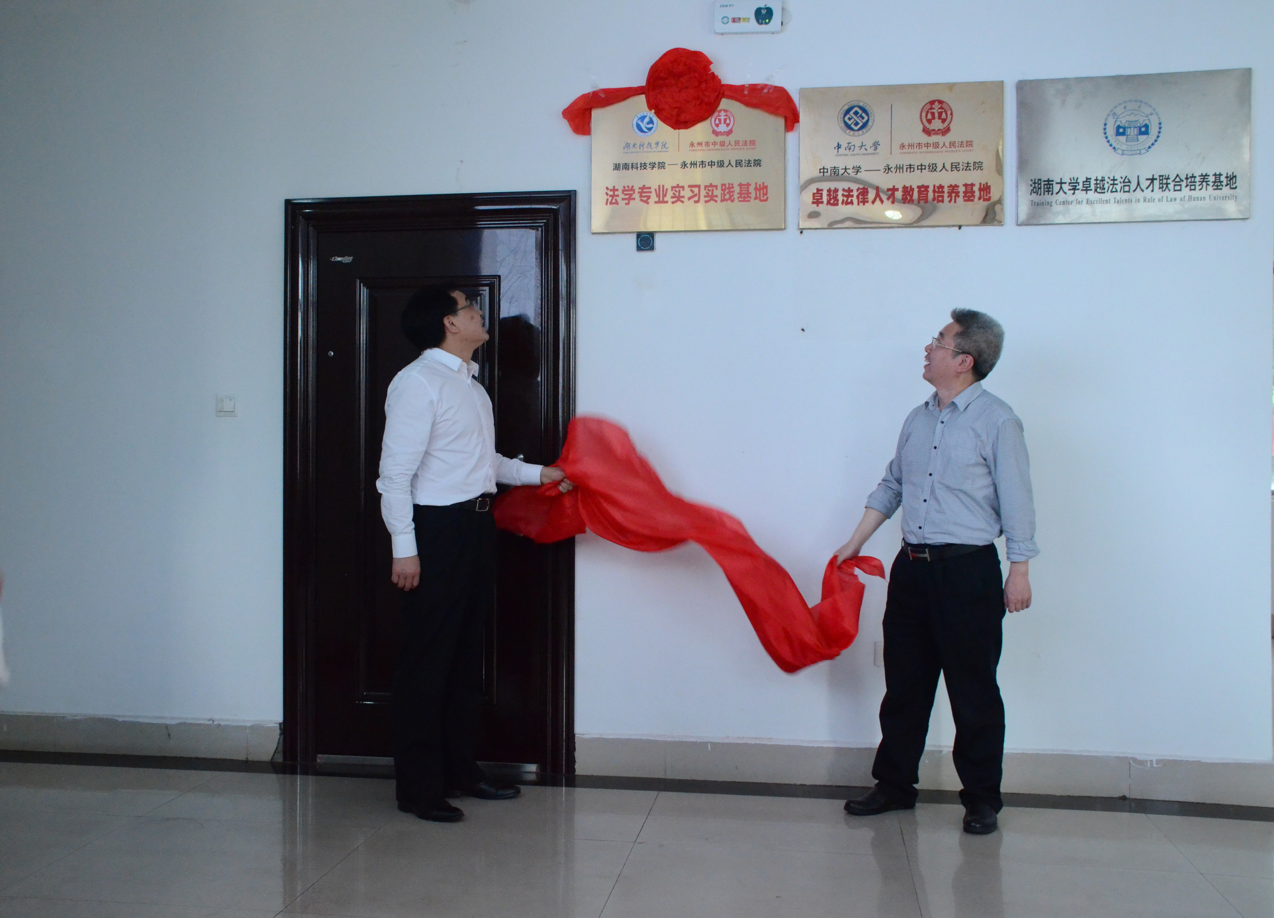 本网讯 4月9日上午,“2026世界杯官方合作网站法学专业实习实践基地”揭牌仪式在永州市中级人民法院举行,市中级人民法院党组书记、院长罗重海和校党委书记、校长曾宝成共同为基地揭牌。市中级人民法院副院长高和平、郭红艳,副校长李常健及人文与社会科学学院负责人等参加揭牌仪式。