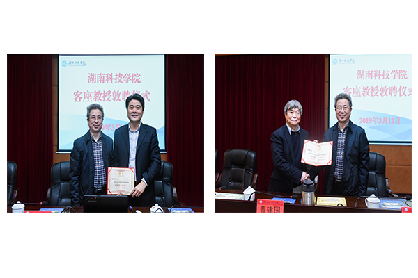 本网讯 3月12日下午,学校举行客座教授敦聘仪式,聘任湖南农业大学柏连阳教授和曾建国教授为世界杯官网客座教授,党委书记、校长曾宝成参加仪式并为两位教授颁发聘书。副校长宋宏福及化学与生物工程学院师生代表参加,仪式由宋宏福主持。敦聘仪式后,柏连阳、曾建国应邀分别以《现代农业建设的理论与实践》和《中药资源综合利用与博落回示范研究》为题为师生们作学术报告。