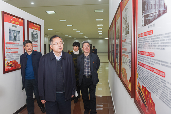 调研组一行实地查看了党建陈列室、学校党校等地,同时进行了资料查阅、访谈交流、个别走访。