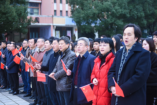 党委书记、校长曾宝成在国旗下发表了振奋人心的讲话。他指出,2019年是新中国成立70周年,是全面建成小康社会、实现第一个百年奋斗目标的关键之年,也是深入贯彻落实全国教育大会精神开局之年。新的一年里,我们要不忘初心、牢记使命,奋进新时代、壮阔新征程。他强调,我们要用忠诚彰显爱国,坚定社会主义办学方向,忠诚党的教育事业,争做“四有”好老师,争做“三有”好青年;要立足新起点、谋求新发展、展现新作为,积极营造干事创业浓厚氛围,推动学校事业全面发展、全面进步;要坚持立德树人,坚持“四个服务”,以更高的标准、更实的措施、更大的热情深化综合改革,加快学校“双一流”建设步伐,推动学校内涵式发展。他勉励师生们要把学习作为首要任务,树立梦想从学习开始、事业靠本领成就的观念,让勤奋学习成为筑梦远航的动力,让增长本领成为奋力前行的能量。他希望全校师生要以坚如磐石的信心、只争朝夕的劲头、坚韧不拔的毅力,在接续奋斗中谱写学校发展的精彩华章,以优异的成绩向新中国成立70周年献礼。