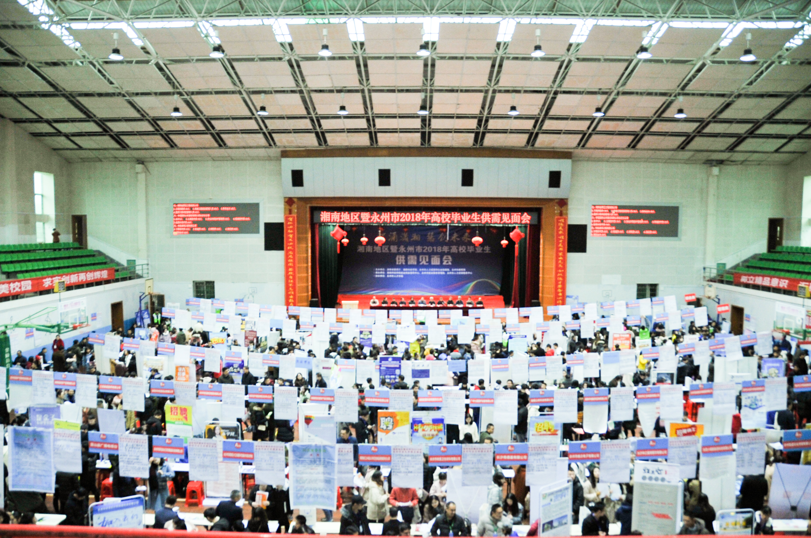 本网讯 千帆竞发,百舸争流。 12月8日,“智涌潇湘,慧创未来”湘南地区暨永州市2018年高校毕业生供需见面会在校体育馆和训练馆举行,吸引了来自校内外的应届毕业生8100人次进场求职。