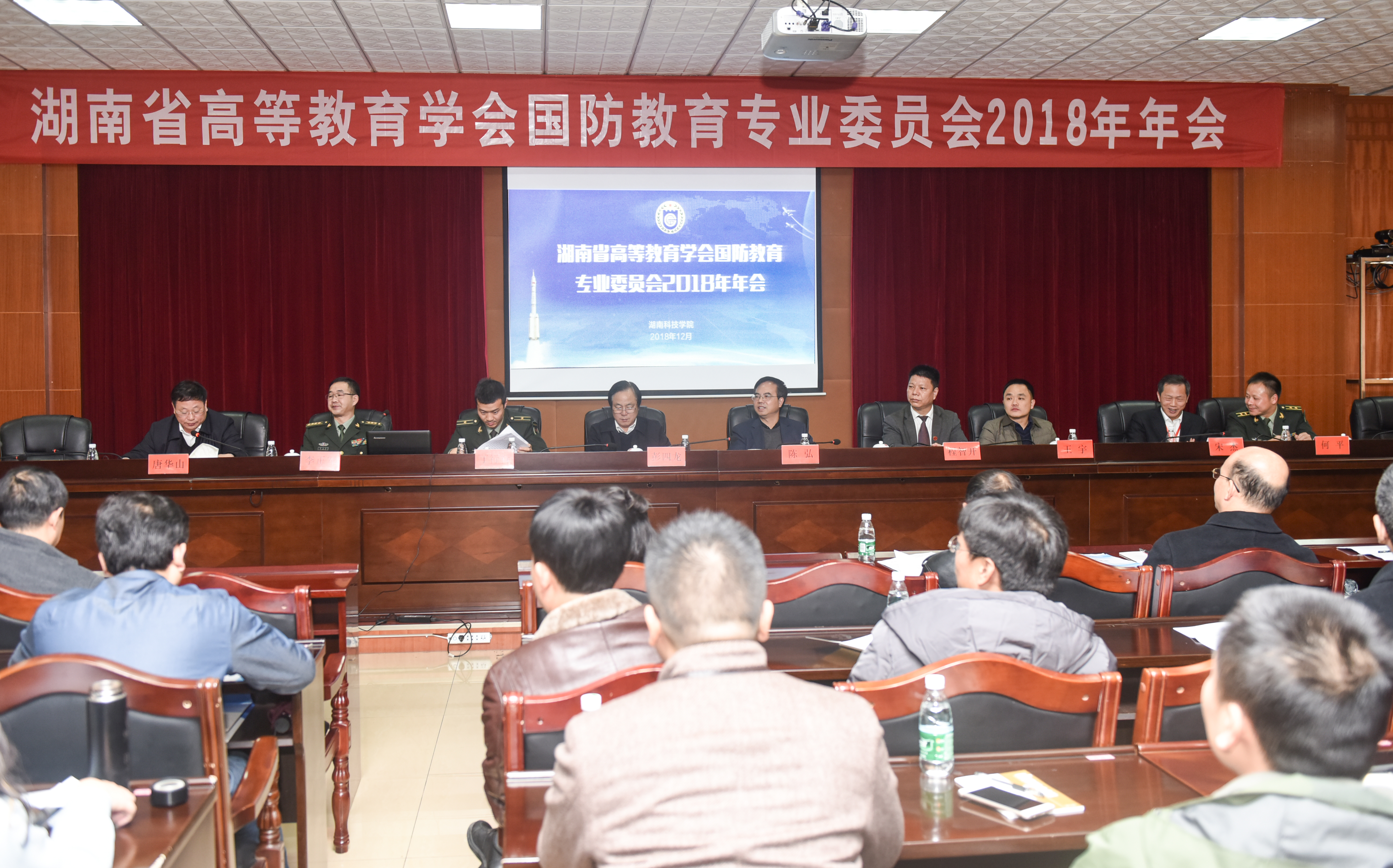 本网讯 12月6日上午,湖南省高等教育学会国防教育专业委员会2018年年会在世界杯官网召开,省教育厅体卫艺处处长彭四龙,校党委书记陈弘,副校长程智开,省军区、省教育厅相关领导以及学会会员共120余人参加。