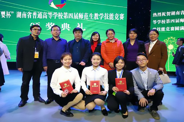 本网讯 11月10日,湖南省高校第四届师范生教学技能竞赛在衡阳师院落下帷幕。此次竞赛分为学前组、小学组、中学组三个类别,共有来自全省24所高校的141名选手参赛。世界杯官网共选派5名学生参赛,其中理学院的陶锦冰获得中学理科组一等奖,人文学院的罗月花获得中学文科组二等奖,电信学院的田香徽和邓争分别获得小学组二等奖和中学理科组三等奖。