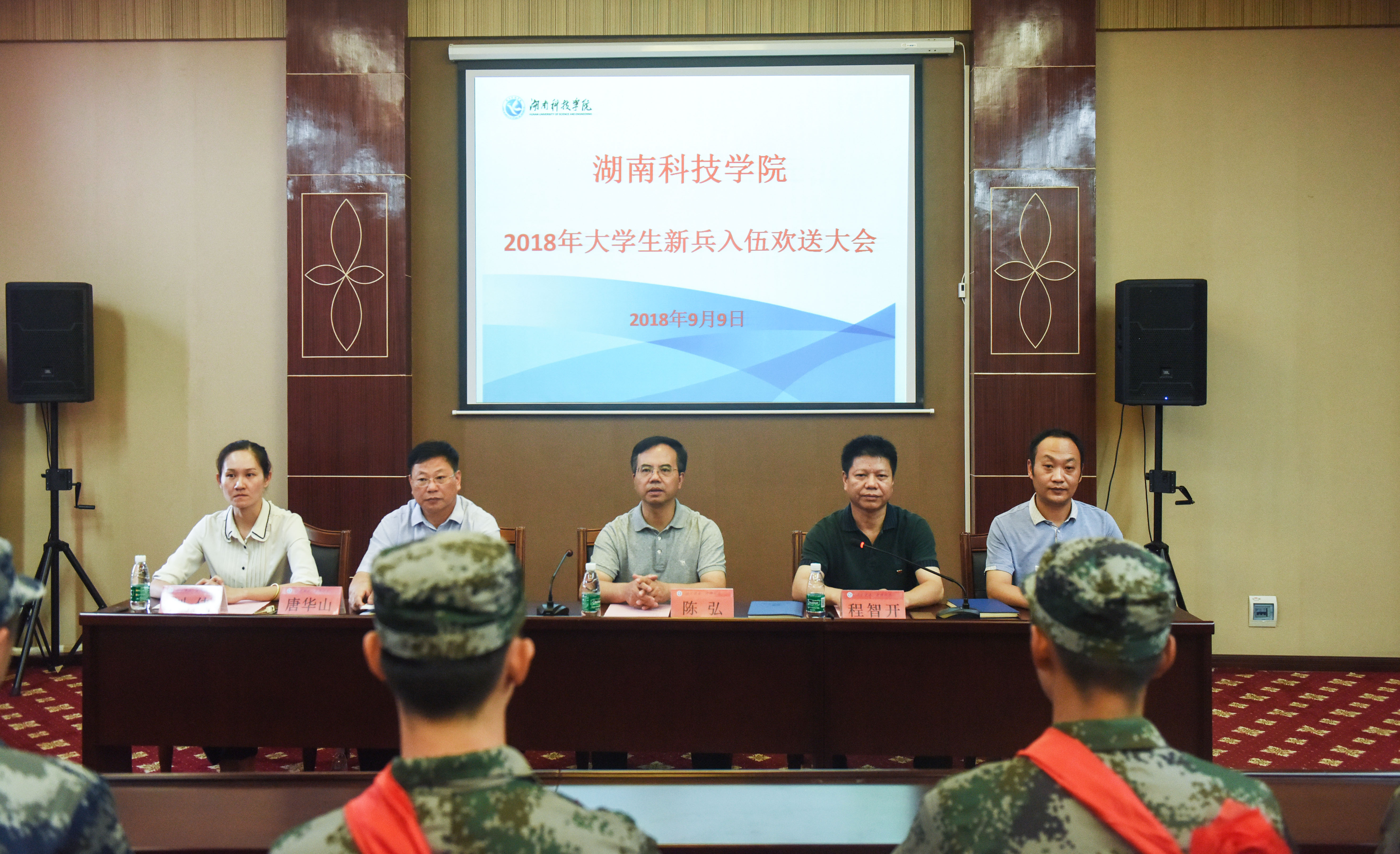 陈弘首先代表学校党委、行政向入伍新兵表示热烈的祝贺,并提出三点期望:一是在政治品格上历练自己,在军队里接受党性与军人血性的锻炼,成为一个信念坚定、政治合格的共产主义战士;二是希望同学们在部队经过严格纪律历练,加强纪律意识,在组织性和纪律性上面有很大的提高和进步;三是在意志上要得到严格训练,锻造出战胜困难的信心、坚定的意志与顽强的毅力,对待任何困难都能勇敢面对。“军人是无上光荣的,衷心祝愿同学们在通过部队的历练后光荣的回到母校,母校等着你们载誉而归。”
