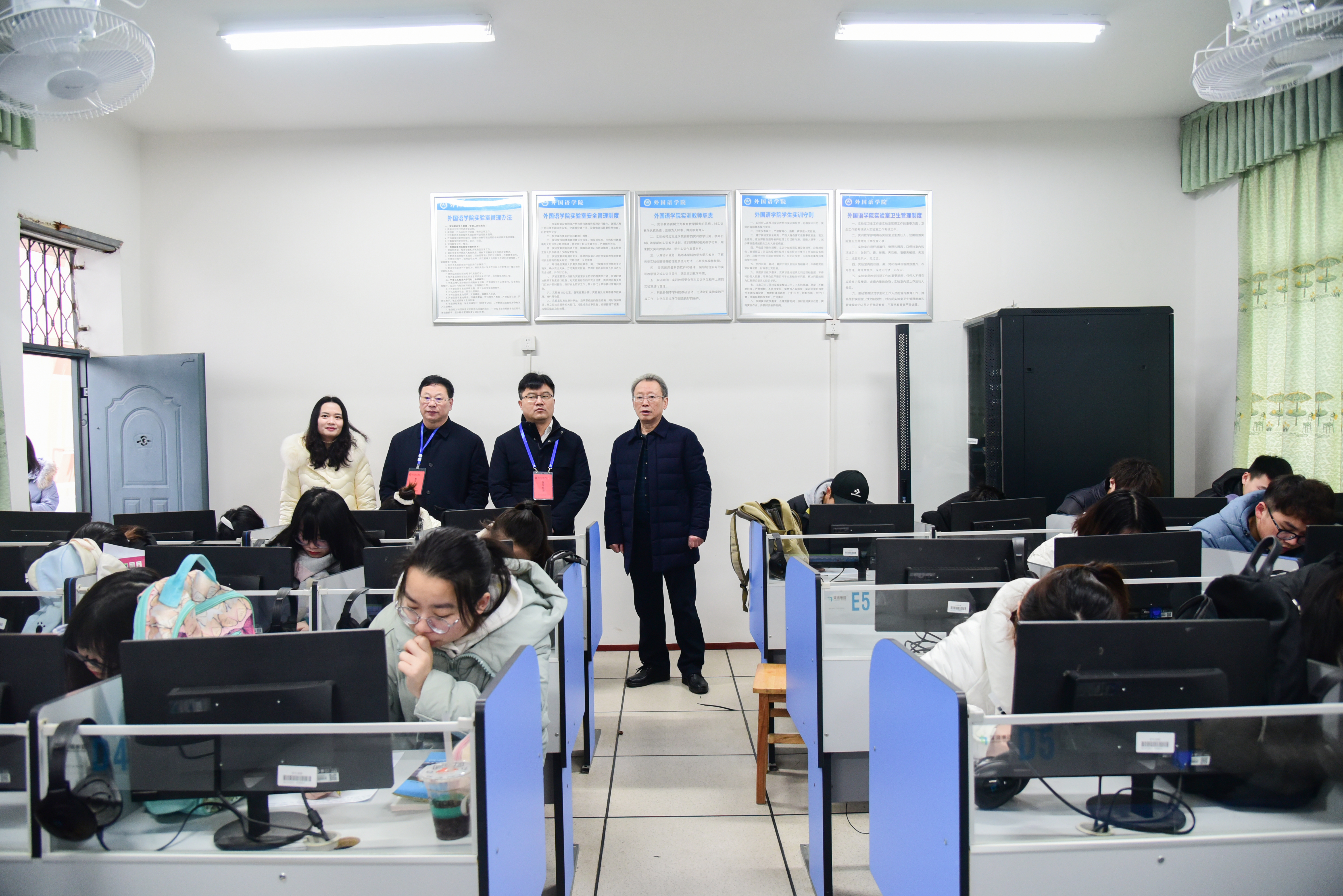 校领导深入教学一线了解教师课堂行为规范、课堂教学组织与纪律、学生上课出勤以及教学设备运行等情况,并就课堂教学等与老师们进行交流。
