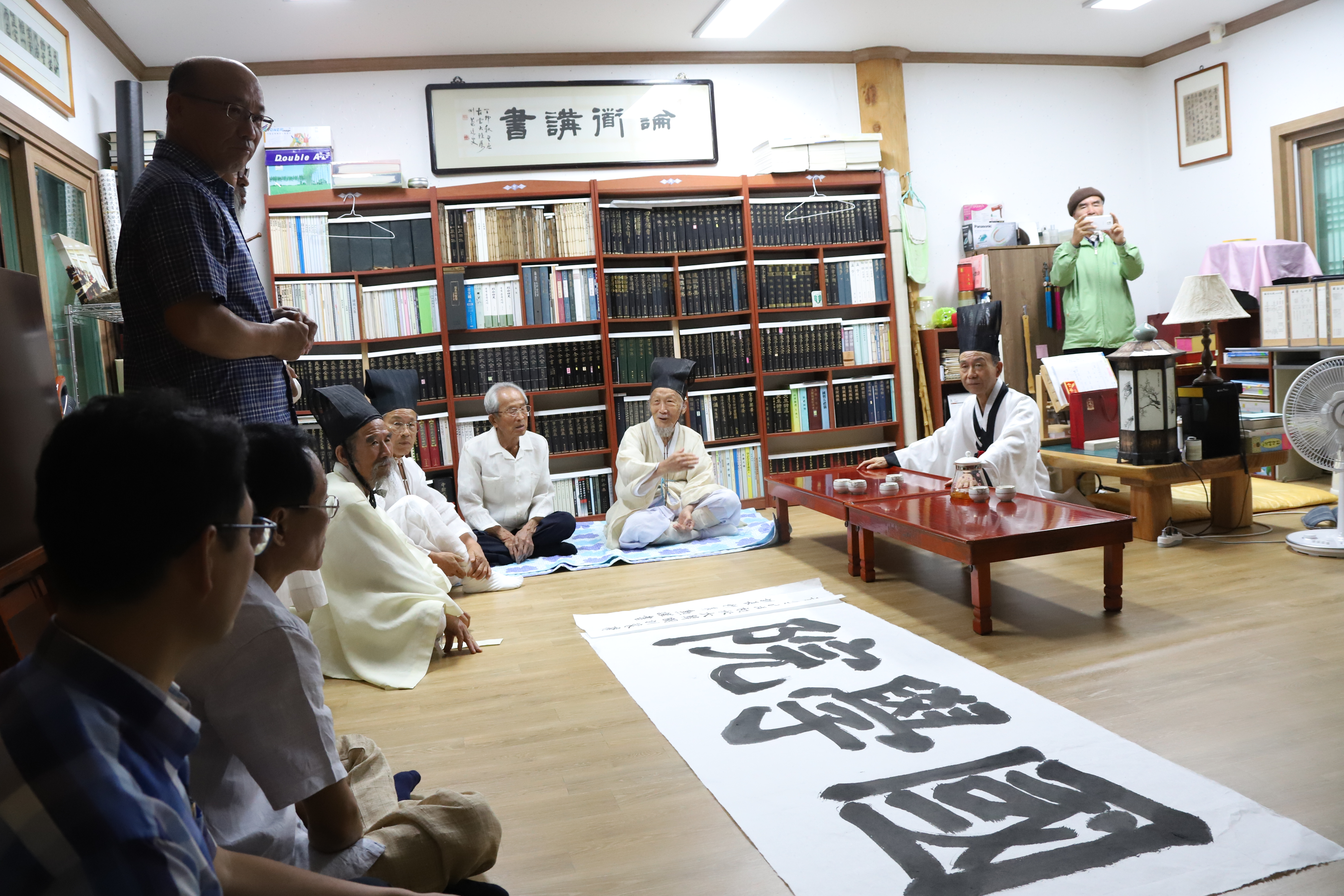 游学训蒙斋期间,训蒙斋山长古堂先生为诸生讲授《道统渊源图》、《孟子》牛山章、朱子《同安县谕学者》、河西先生《天命图跋》、《复性赋》、栗谷先生“理气说”、艮斋先生“气质体清说”等内容,是中韩儒学知识的讲述,更是儒学精神的传递。古堂先生讲课,首重梳理道统渊源。儒学道统始于伏羲,后有尧、舜、禹、汤、文、武、周公、孔子、曾子、颜子、子思、孟子、周子、伯程子、叔程子、张子、朱子。韩国儒学道统承接朱子,而为静庵赵光祖、退溪李滉、栗谷李珥、沙溪金长生、尤庵宋时烈、农岩金昌协、渼湖金元行、近斋朴胤源、梅山洪直弼、全斋任宪晦、艮斋田愚。古堂先生常常勉励诸生,谓周子悟道于湖南道州月岩,诸生学于周子悟道处,是非常难得的机会,希望诸生珍惜。古堂先生十分珍爱学生,将学生比作春日红花,生命鲜活;比作夏日甘霖,润泽万物;比作冬日暖阳,照耀寒冬。种种比喻,无不寄予厚望。古堂先生说:“中华文明是训蒙斋思想之源”,期望的诸生努力学习,发扬光大儒学,承续道统。