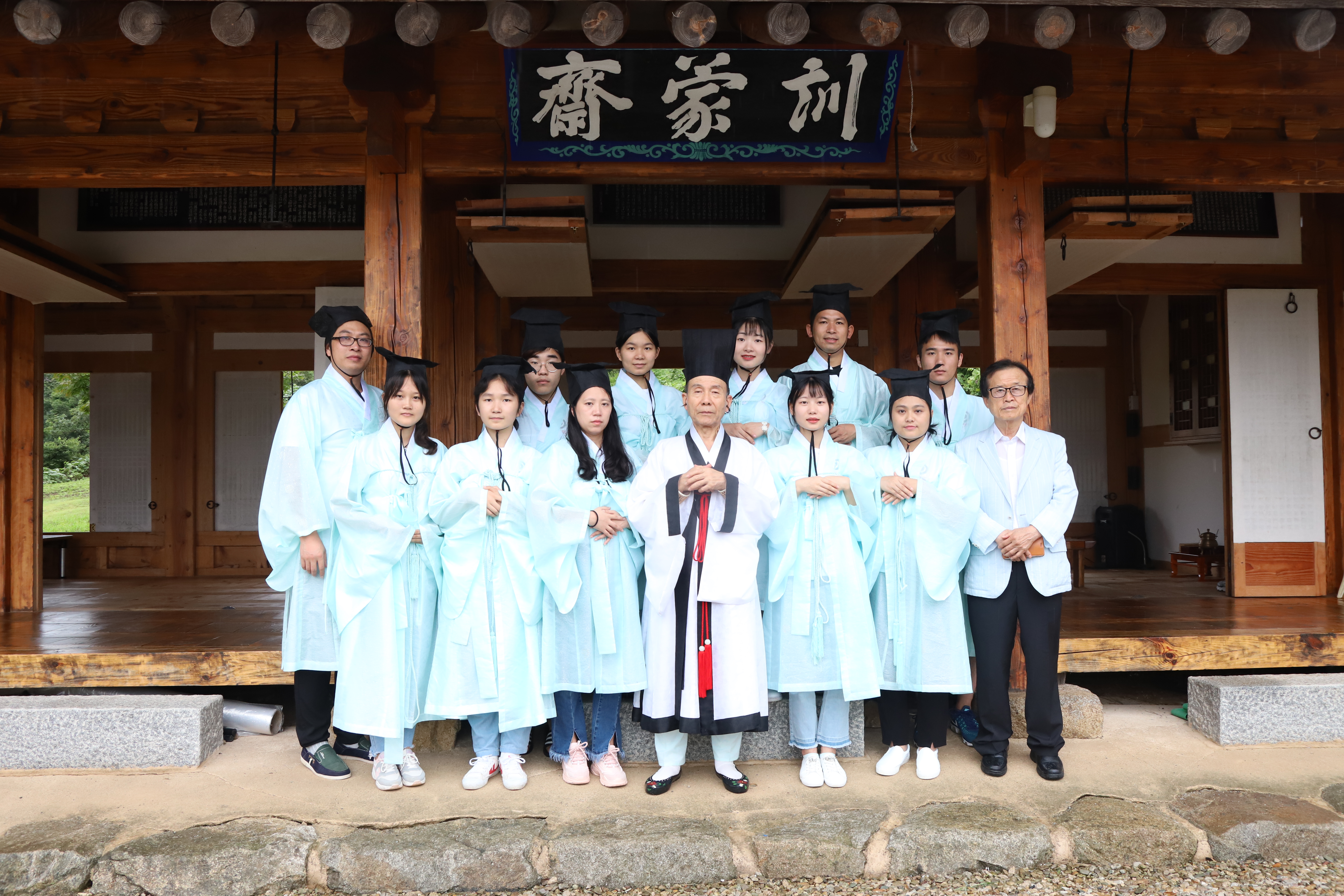 本网讯(通讯员 周平尚 陈微)8月21日,世界杯官网国学院11名师生,抵达韩国全罗北道淳昌郡训蒙斋,参加为期11天的游学活动。师生们跟随训蒙斋山长古堂先生等韩国儒林老先生们学习韩国儒家文化,了解韩国儒学道统,参观笔岩书院、潇洒园和韩国歌辞文学馆,体验韩国茶文化、韩国儒者修炼舞和国乐唱。师生们开拓了视野、增长了见识。