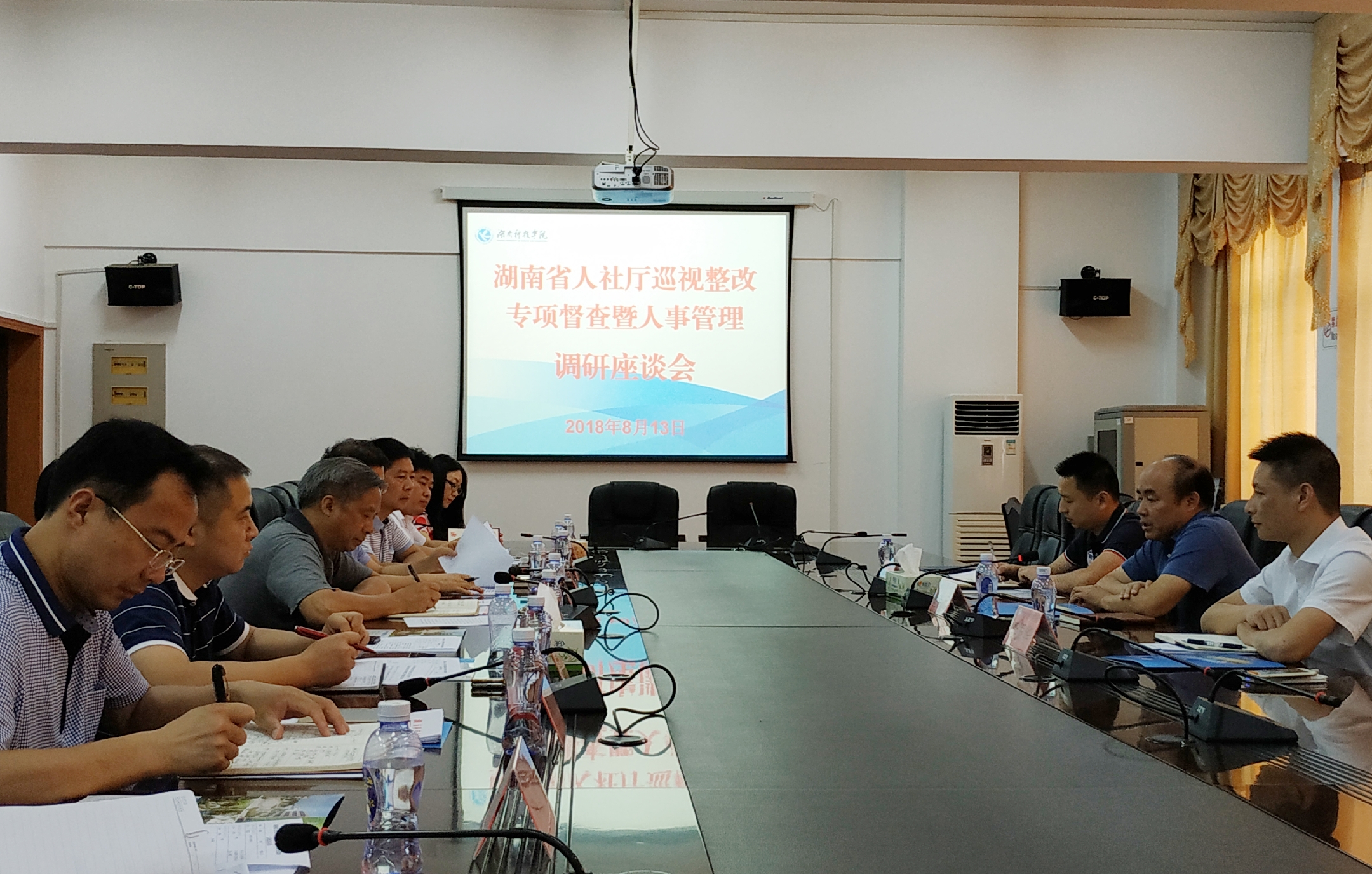 本网讯 8月13日,省人力资源和社会保障厅第一督查组、事业单位人事管理处处长钟吉元、人才开发与人力资源市场管理处副处长李振华等一行来校,开展巡视整改专项督查,并就人事管理工作进行调研座谈,副校长郑山明及相关部门负责人参会。