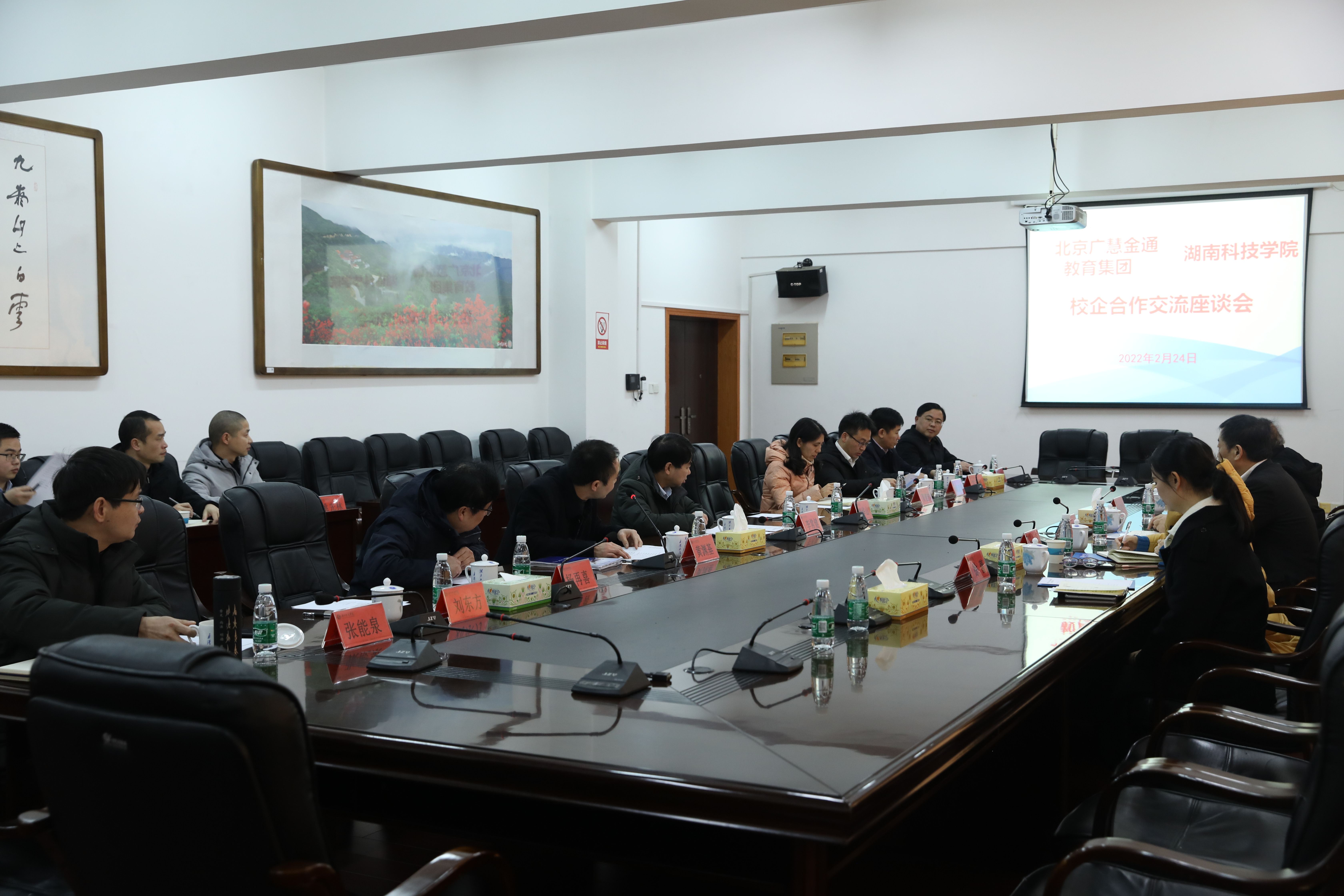 旅游与文化产业学院、学工部、教务处、招生就业处、后勤服务中心、基建处、计划财务处、资产管理处等部门相关负责人,北京广慧金通教育集团相关负责人参加会议。