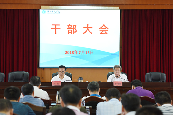 本网讯 7月15日上午,学校召开干部大会,对2018年上半年工作进行总结,对假期工作进行安排部署。在校领导、全体中层干部参加会议。