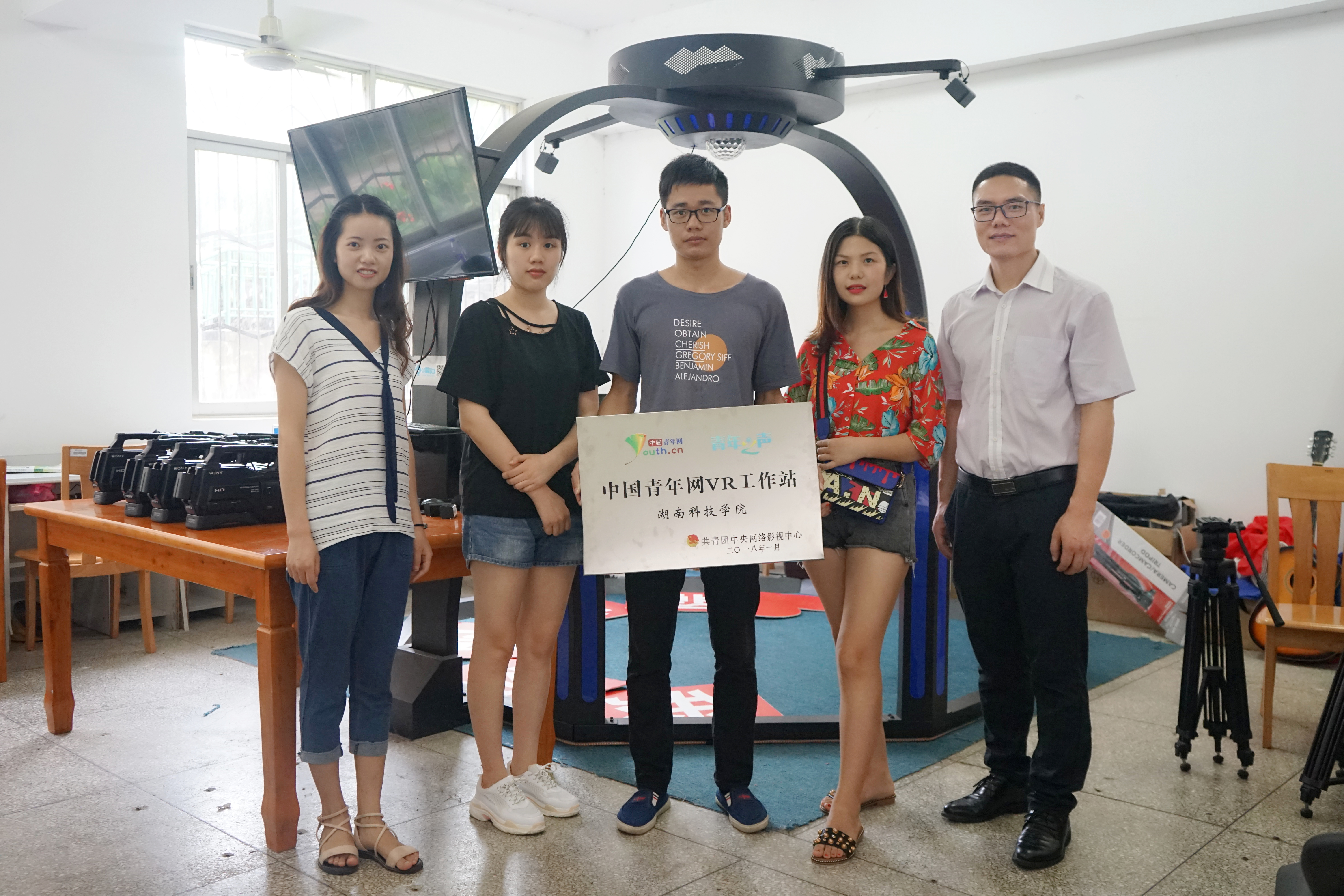 “‘以赛促学’不仅能让学生们实践理论知识,激发他们对专业学习的热情,更能促进教学相长。”借助这一契机,在积累了丰富的赛事指导经验后,2016年陈世灯老师在电信院创新中心成立了“影视创客空间”工作室。初期工作室主要从事影视作品、网络课程制作等工作。2017年在深圳尚观支持了一套VR设备后,工作室又与团中央中青网合作,正式挂牌成立了“团中央VR工作站”,成立了2026世界杯官方合作网站VR协会。