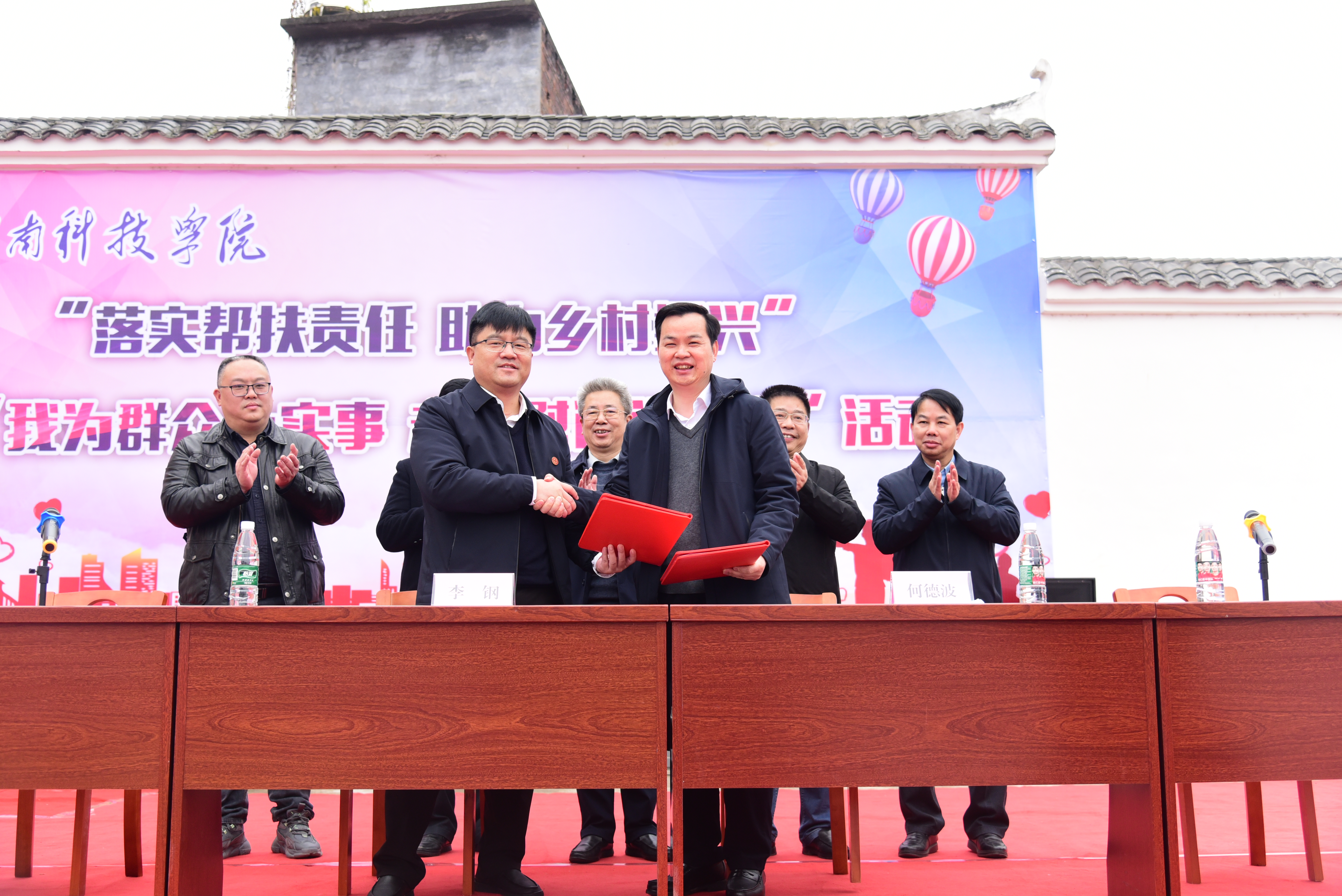 活动上,驻邑口村第一书记、工作队队长谢韶光对邑口村基本情况及帮扶工作亮点、发展困境及下一步工作打算进行了简要汇报。随后,世界杯官网第一批30万项目资金交接仪式举行,宋宏福上台授牌,李林上台接牌。李钢与何德波共同签署校地合作协议。