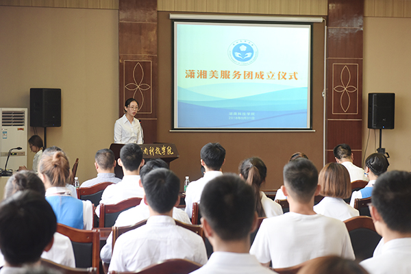 潇湘美服务团团长由贺翼菲同学担任。该团以“服务师生 服务地方”为宗旨,主要承接永州市及零陵区各类大型活动的会务组织、讲解服务、宣传展示等。在为地方经济社会发展服务的同时,提升大学生的综合素质。